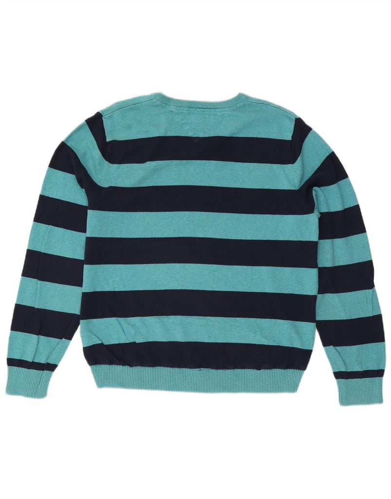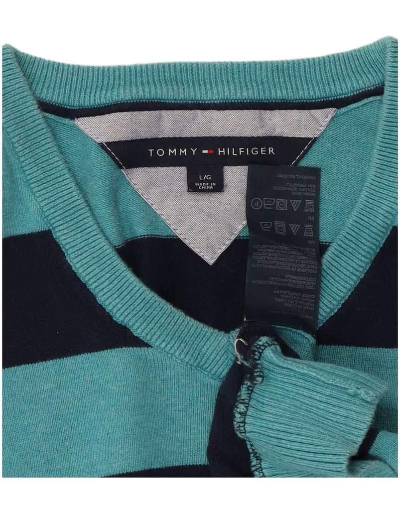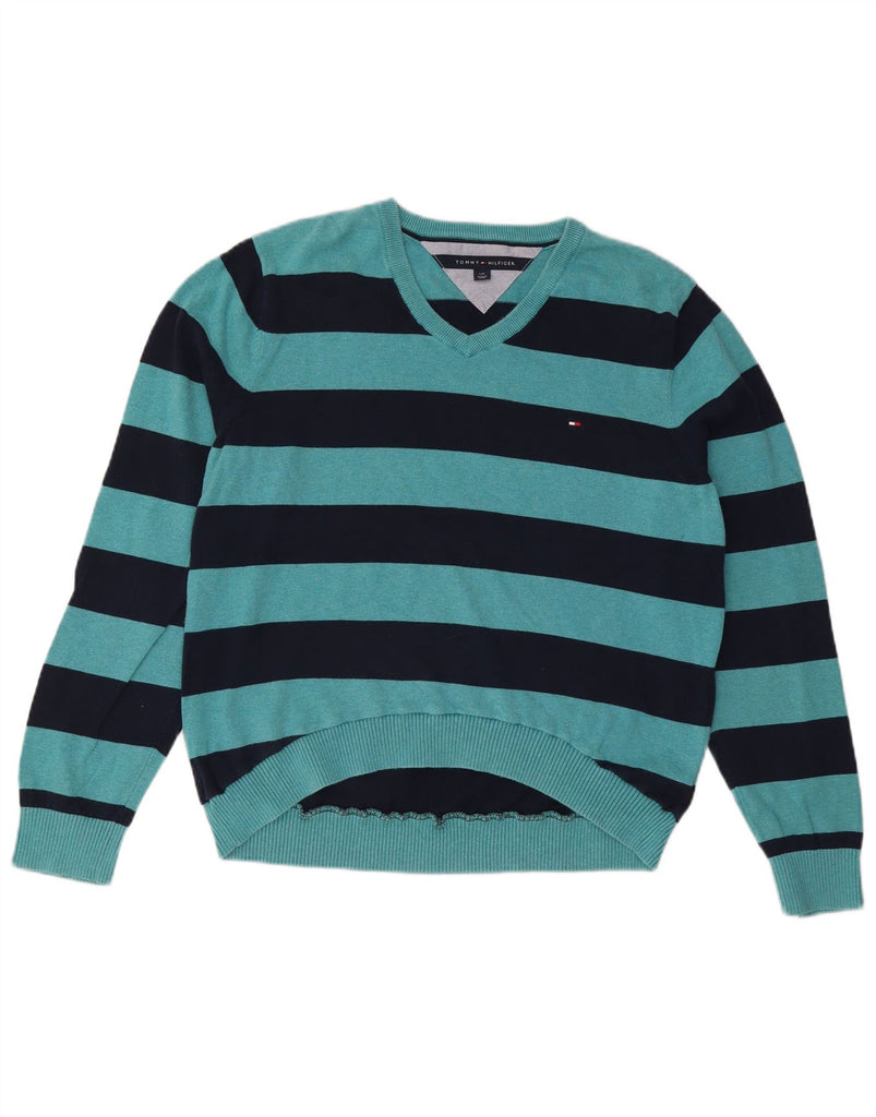 TOMMY HILFIGER Womens V-Neck Jumper Sweater UK 16 Large Blue Striped