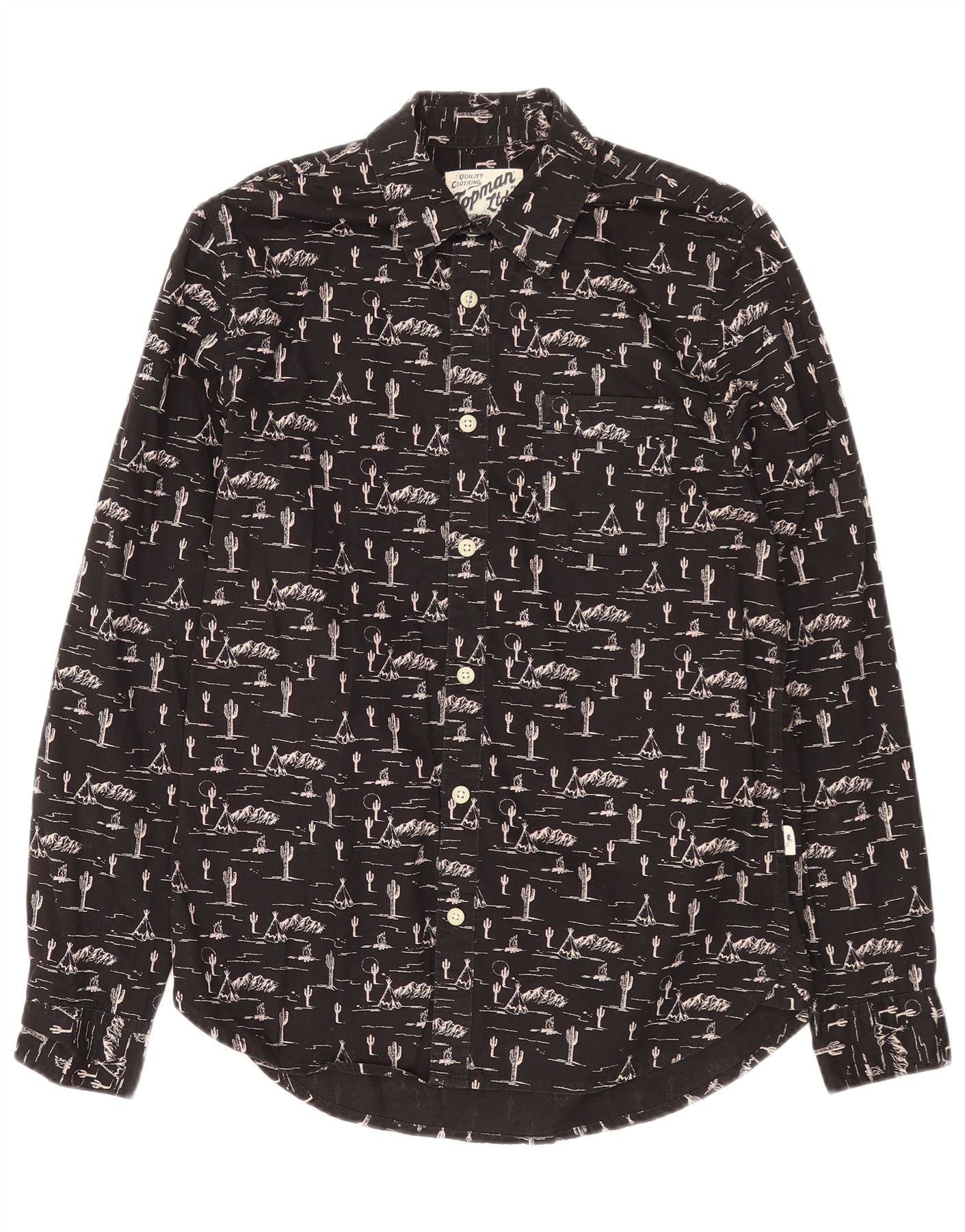 TOPMAN Ανδρικό πουκάμισο με αφηρημένο σχέδιο, μικρό μαύρο βαμβακερό