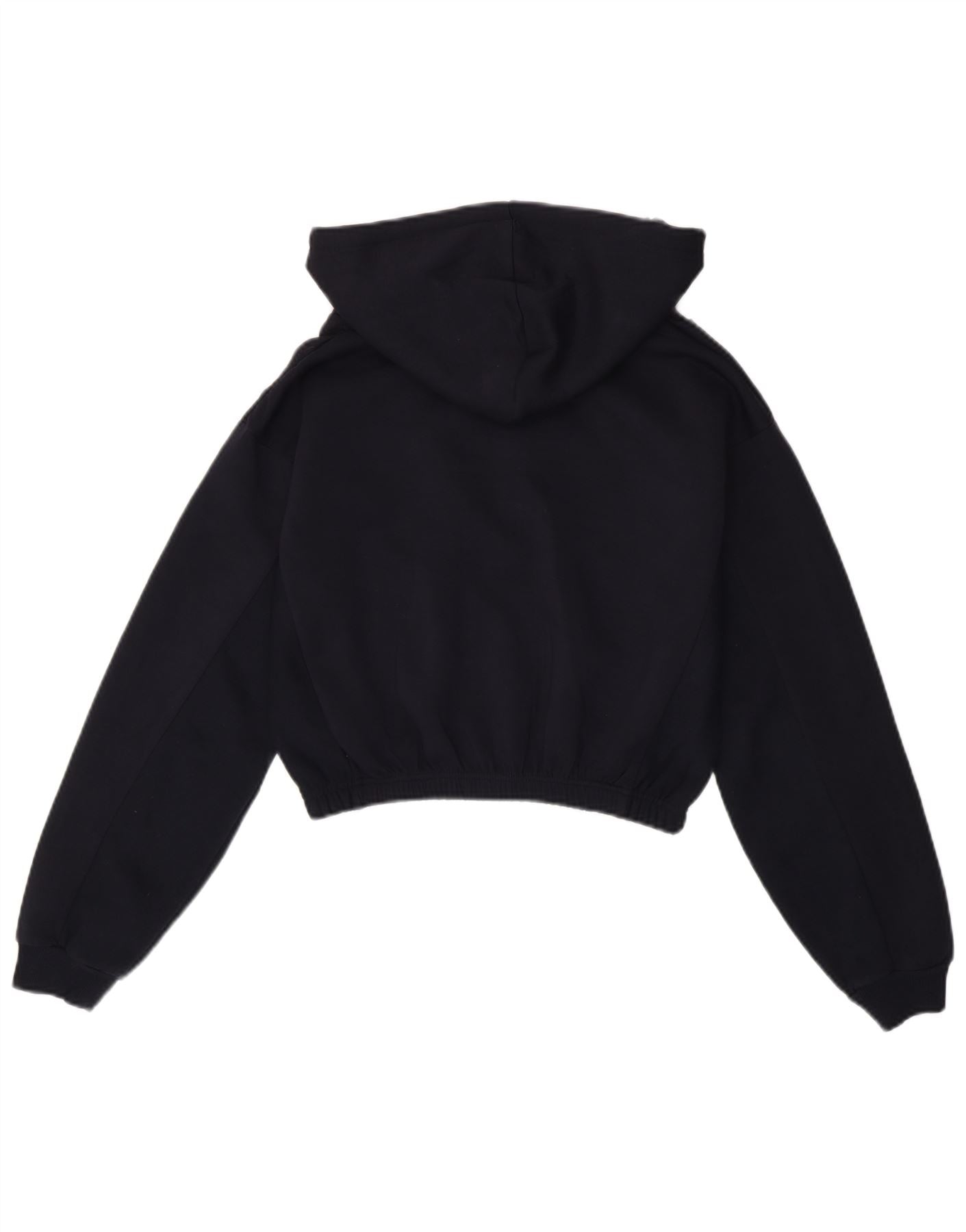 TRUE RELIGION Womens Crop Zip Neck Hoodie Jumper UK 10 Small Navy Blue