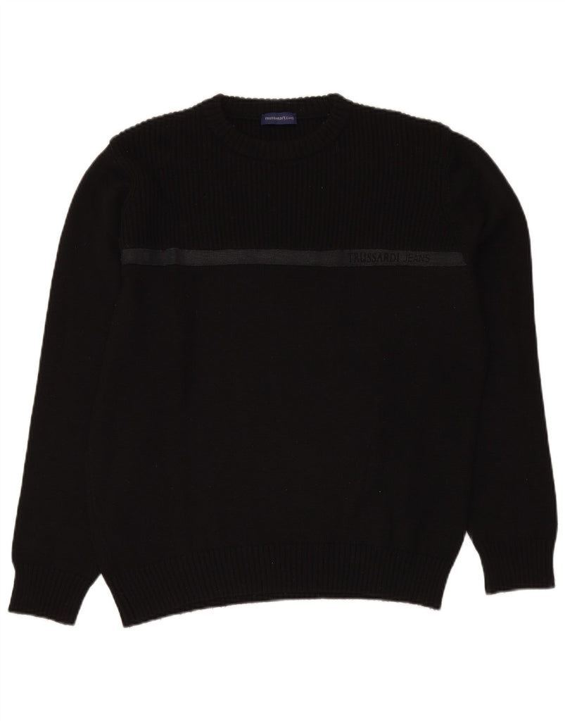 TRUSSARDI JEANS Ανδρικό πουλόβερ με λαιμόκοψη, μεσαίο μαύρο μαλλί