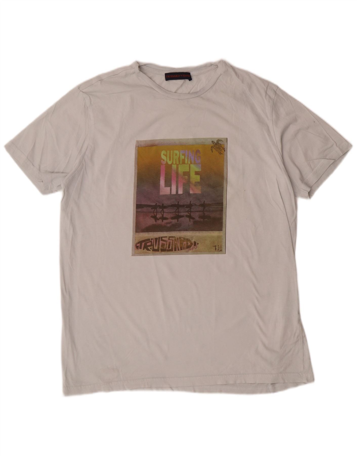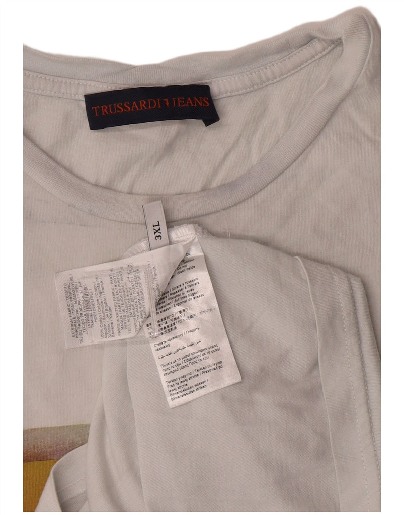 TRUSSARDI JEANS Ανδρικό γραφικό T-Shirt Top 3XL Λευκό βαμβακερό
