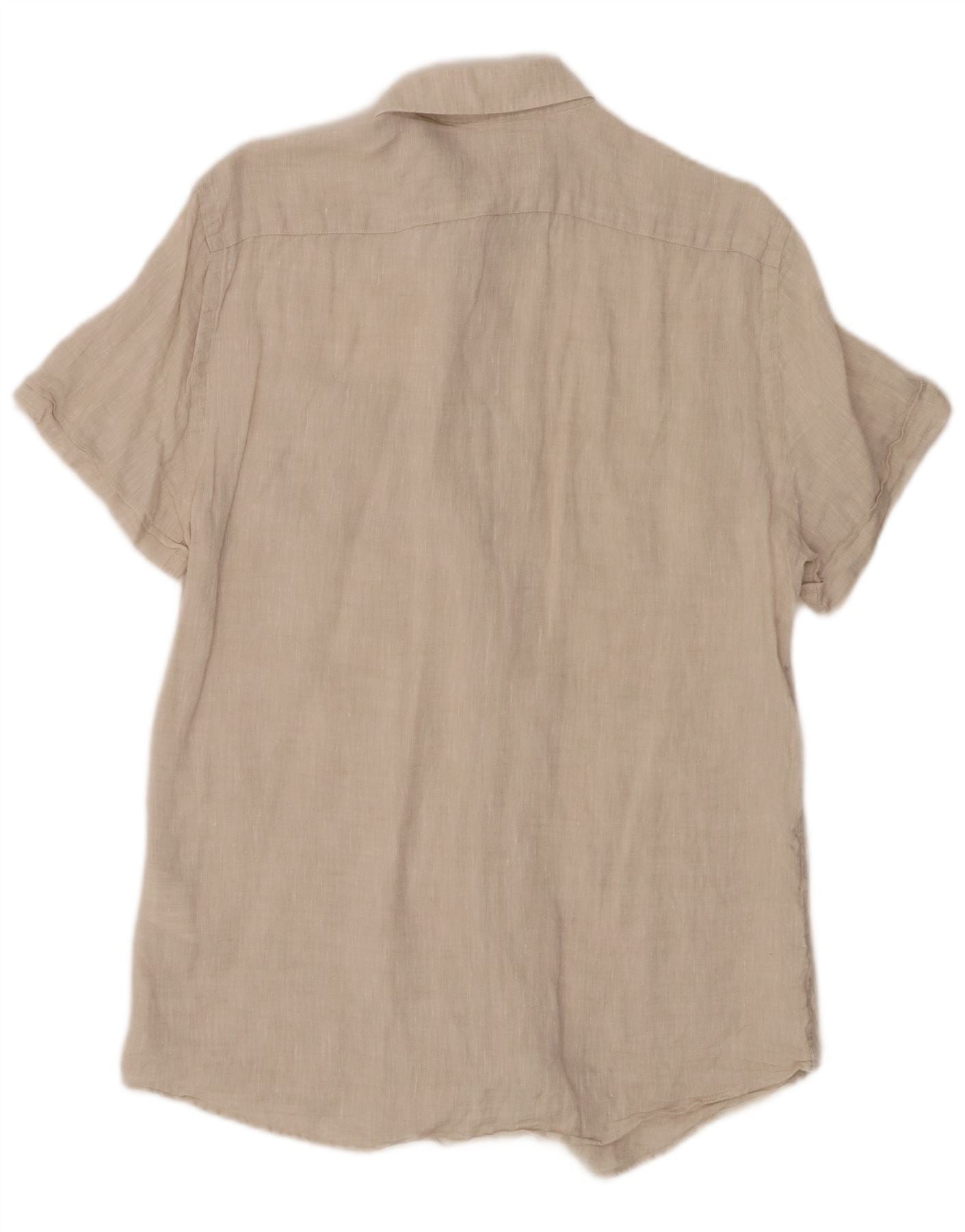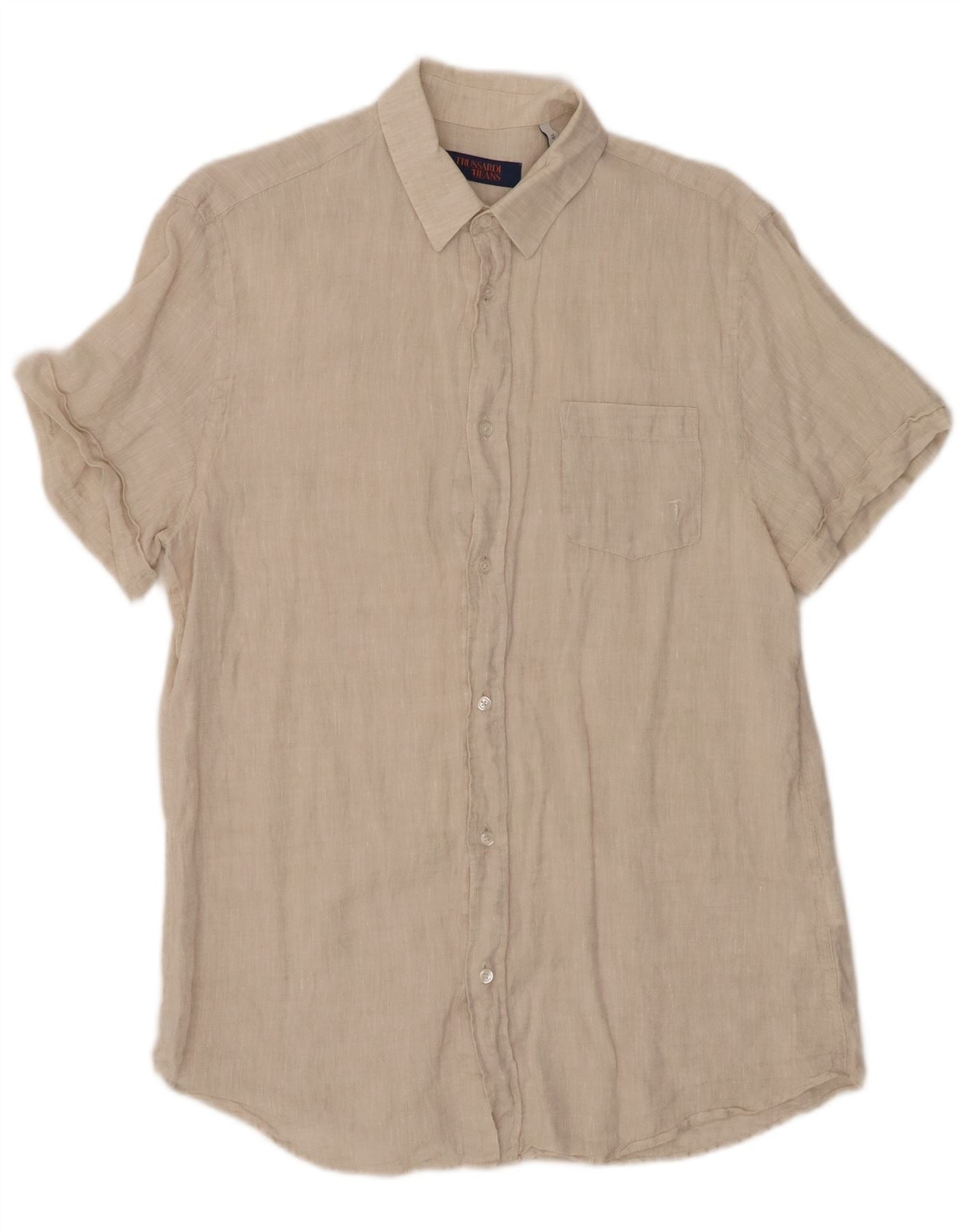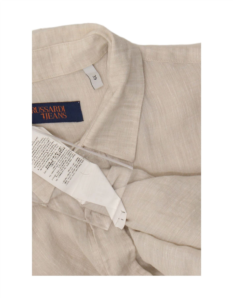 TRUSSARDI JEANS Ανδρικό κοντομάνικο πουκάμισο Μέγεθος 39 Μεσαίο μπεζ λινό