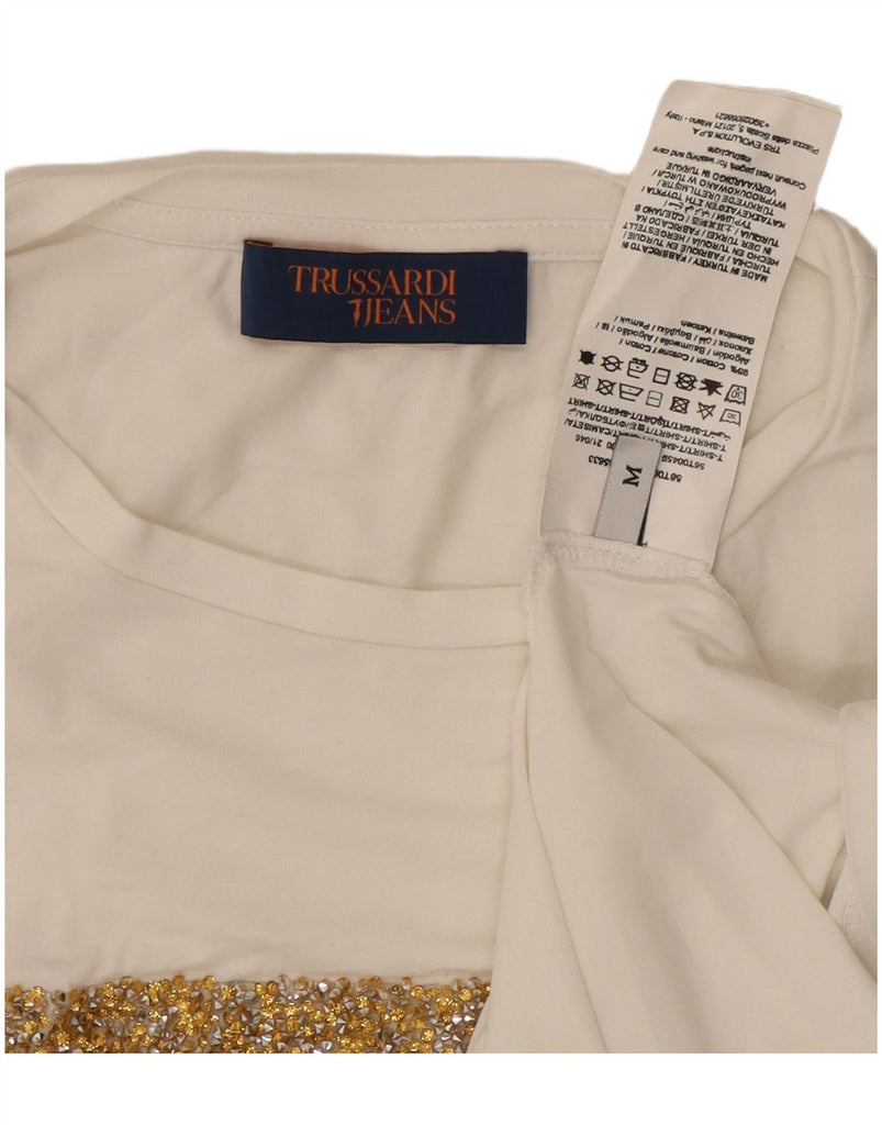TRUSSARDI JEANS Womens Graphic T-Shirt Top UK 12 Medium White Cotton