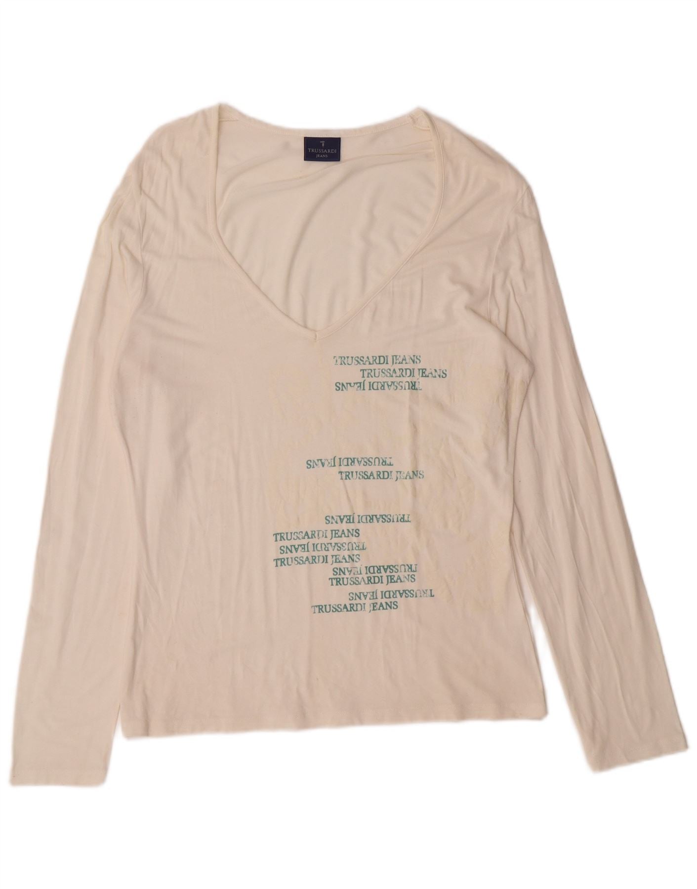 TRUSSARDI JEANS Γυναικείο γραφικό τοπ μακρυμάνικο UK 16 Large Off White