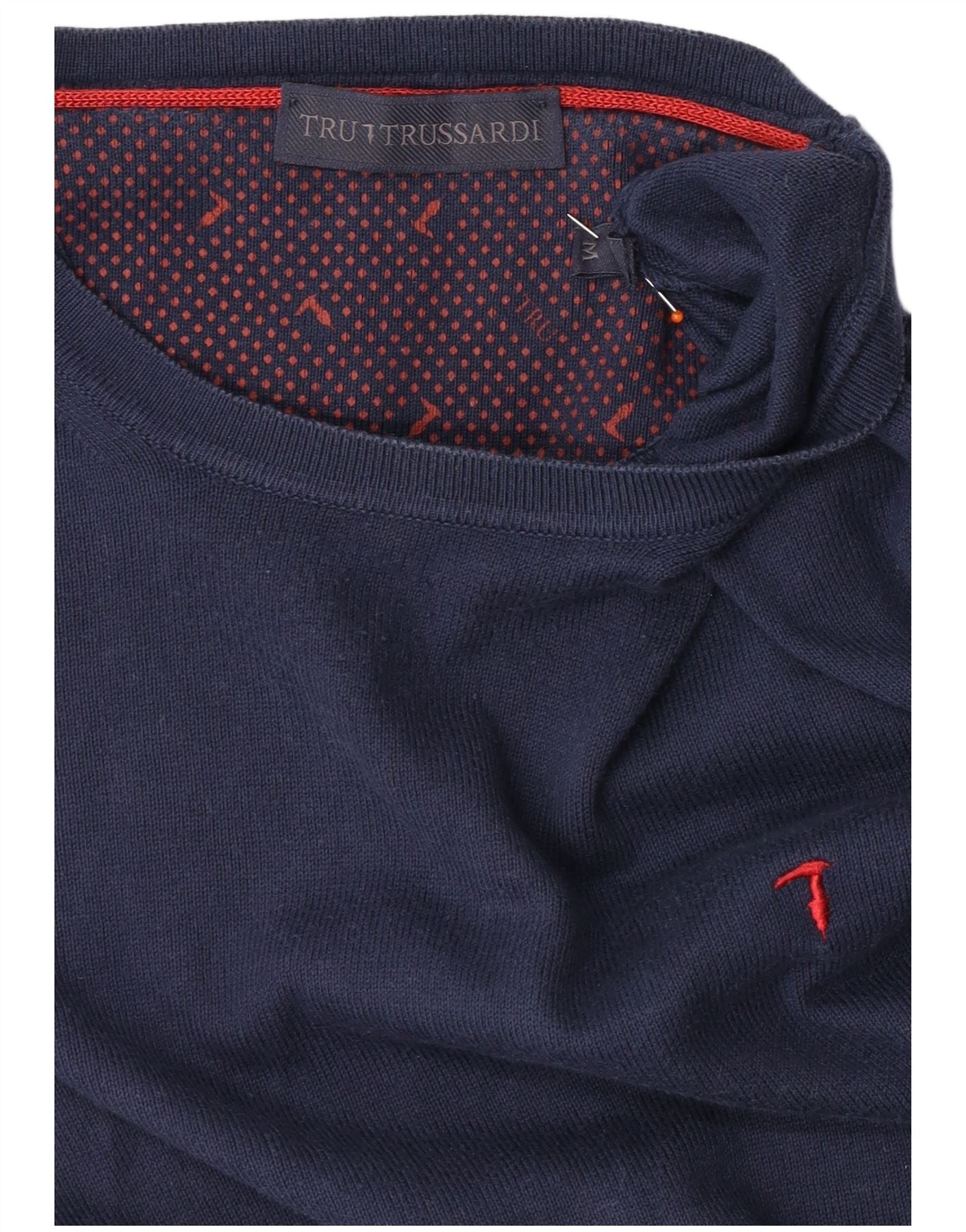 TRUSSARDI Ανδρικό πουλόβερ με λαιμόκοψη μεσαίου μπλε βαμβακερό