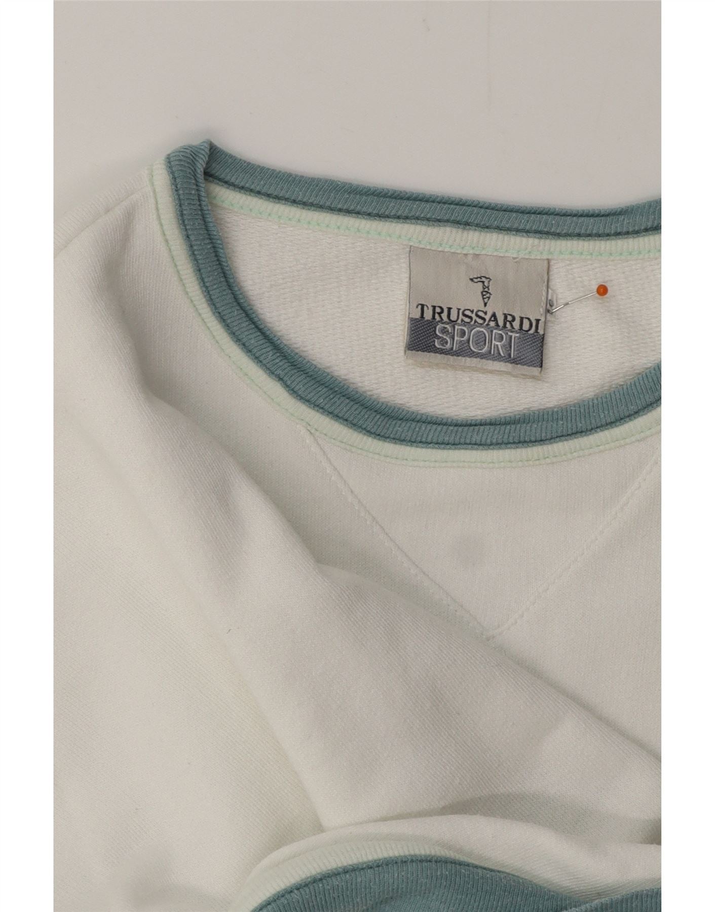 TRUSSARDI Γυναικείο γραφικό φούτερ Jumper IT 46 μεγάλο λευκό βαμβακερό