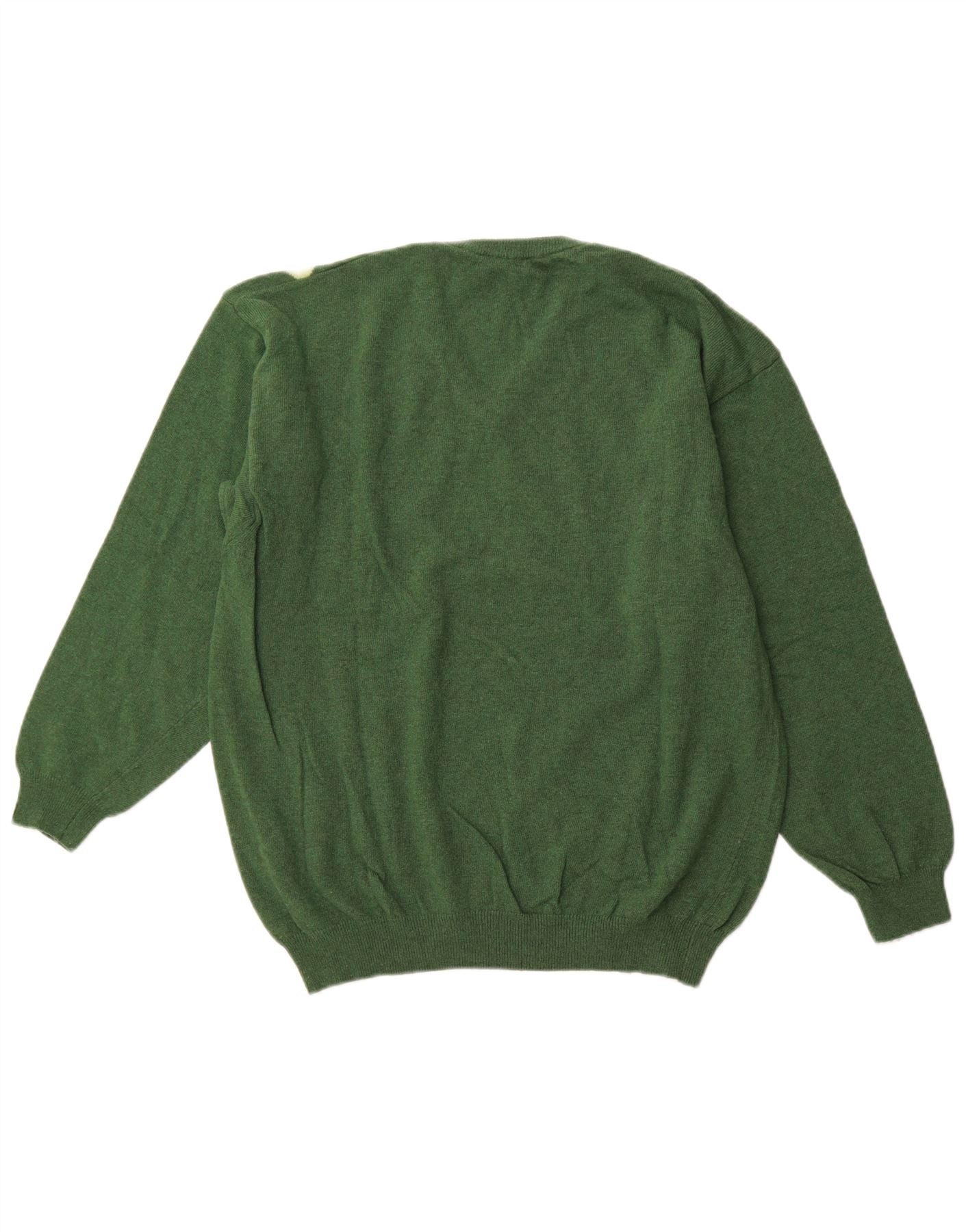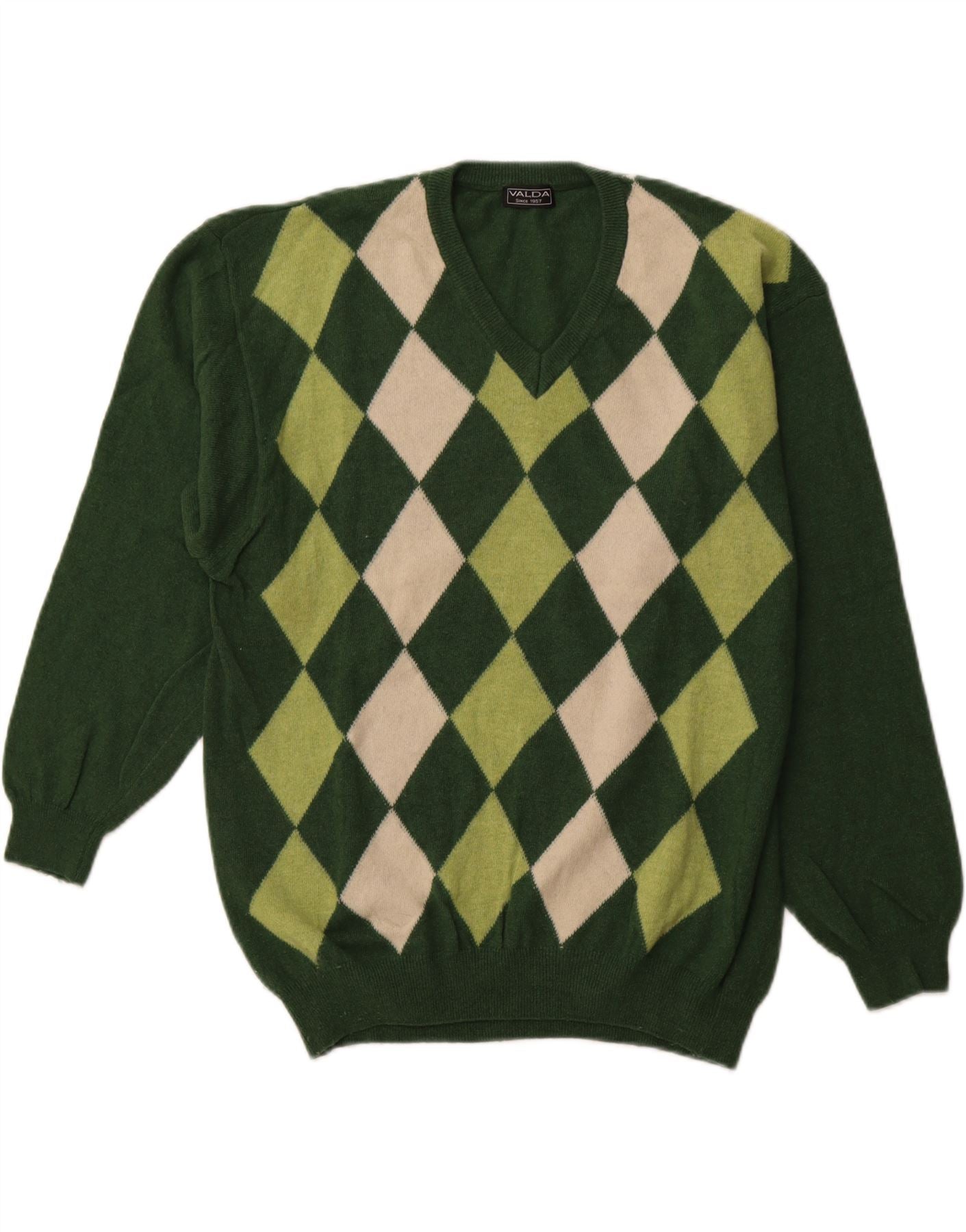 Ανδρικό πουλόβερ VALDA με λαιμόκοψη με λαιμόκοψη μεγάλο πράσινο Argyle/Διαμαντένιο μαλλί
