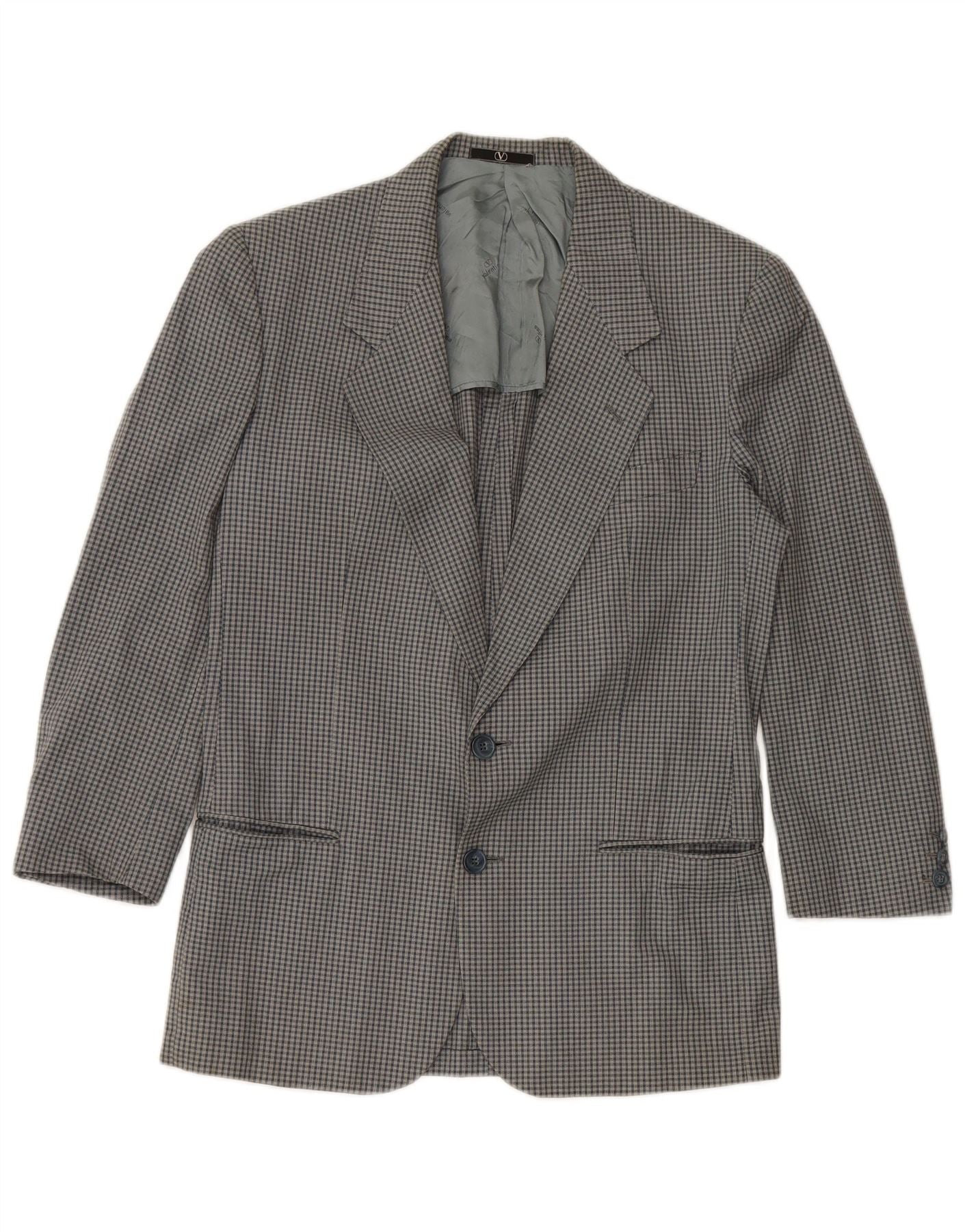 VALENTINO Mens 2 Button Blazer Jacket IT 46 Small Grey Check Cotton