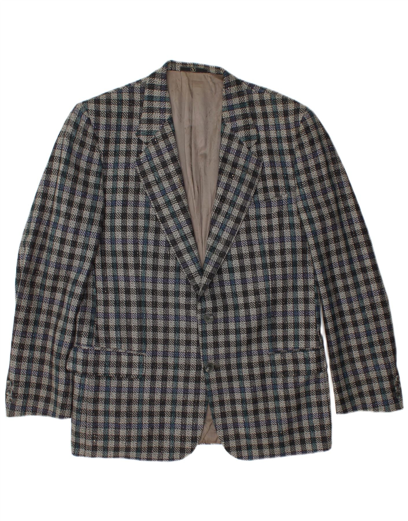 VALENTINO Ανδρικό σακάκι σακάκι με 2 κουμπιά IT 50 μεγάλο μπλε καρό παρθένο μαλλί