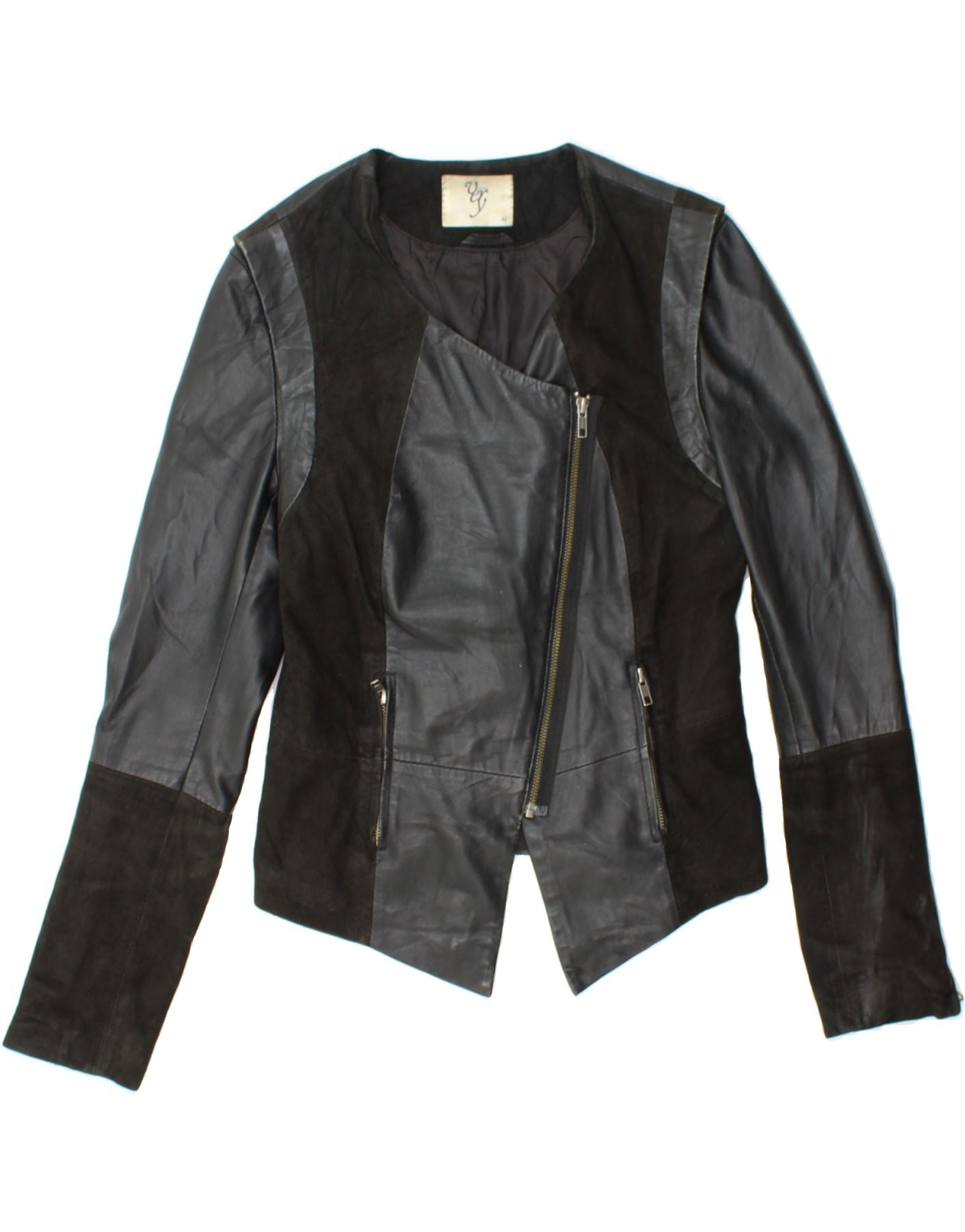 VERO MODA Womens Leather Jacket IT 42 Medium Black Colourblock Leather