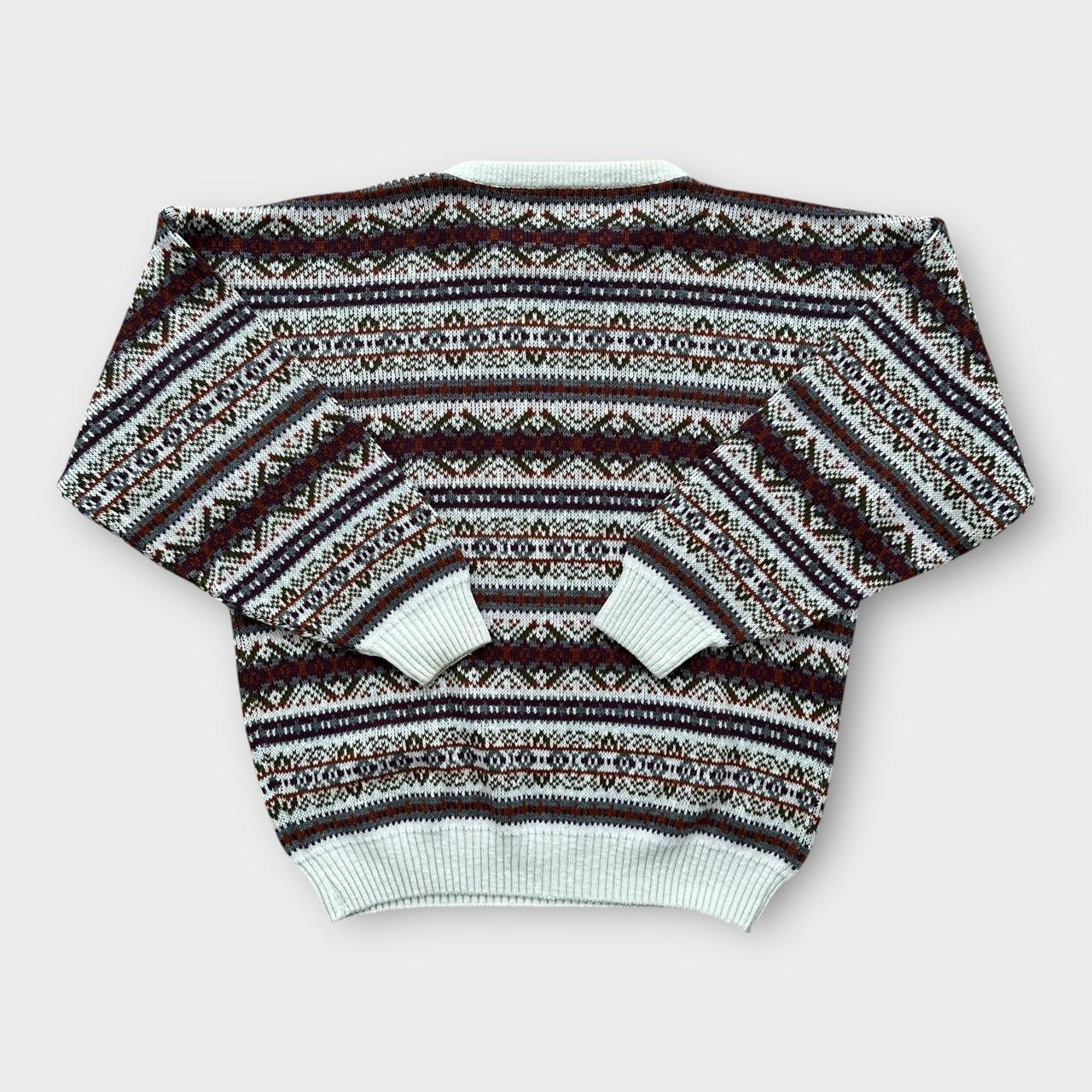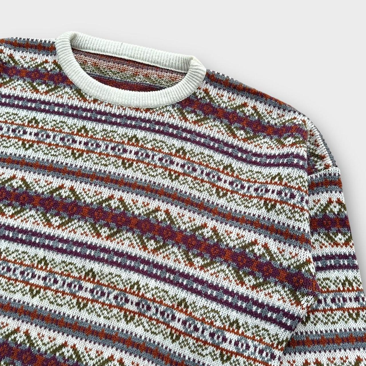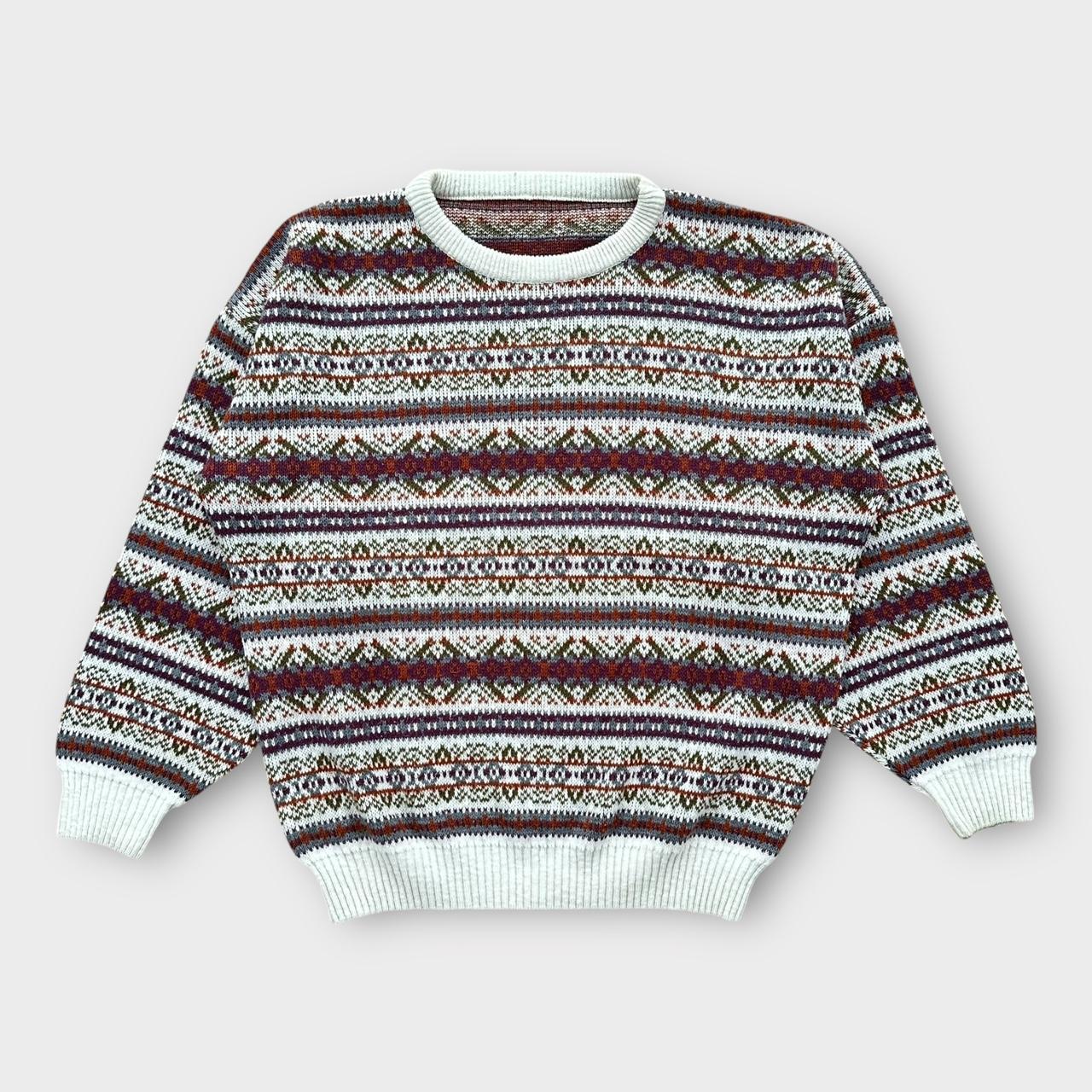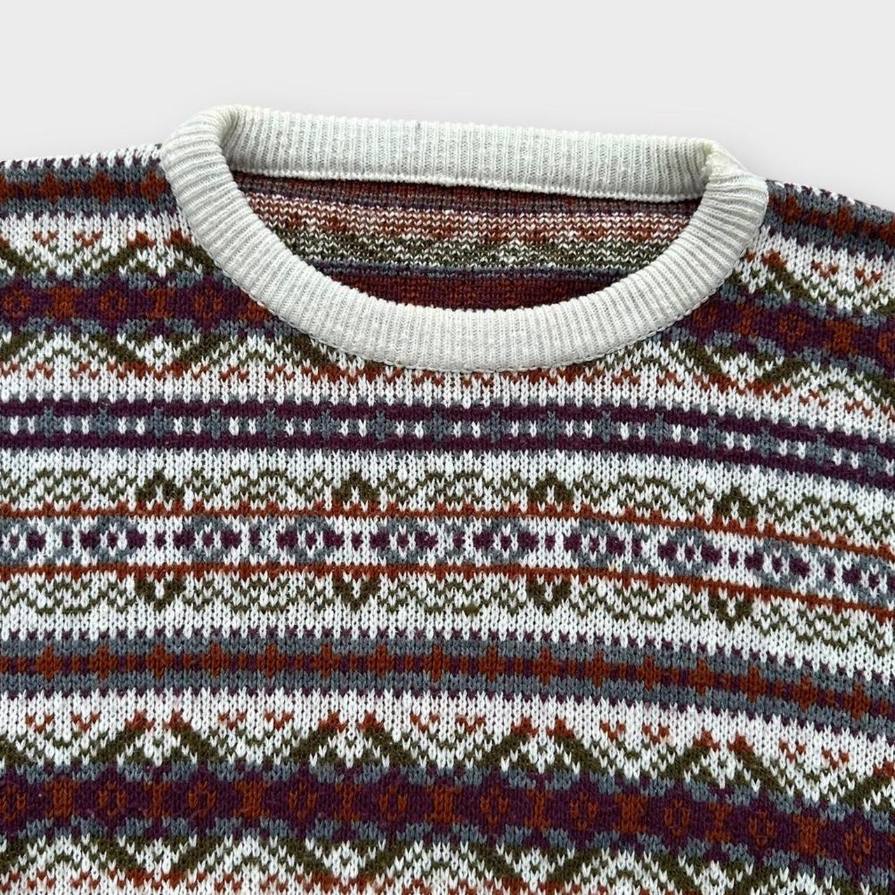 Vintage 90's αφηρημένο πλεκτό jumper με σχέδια σε φθινοπωρινά χρώματα κατασκευασμένο στην Ιρλανδία