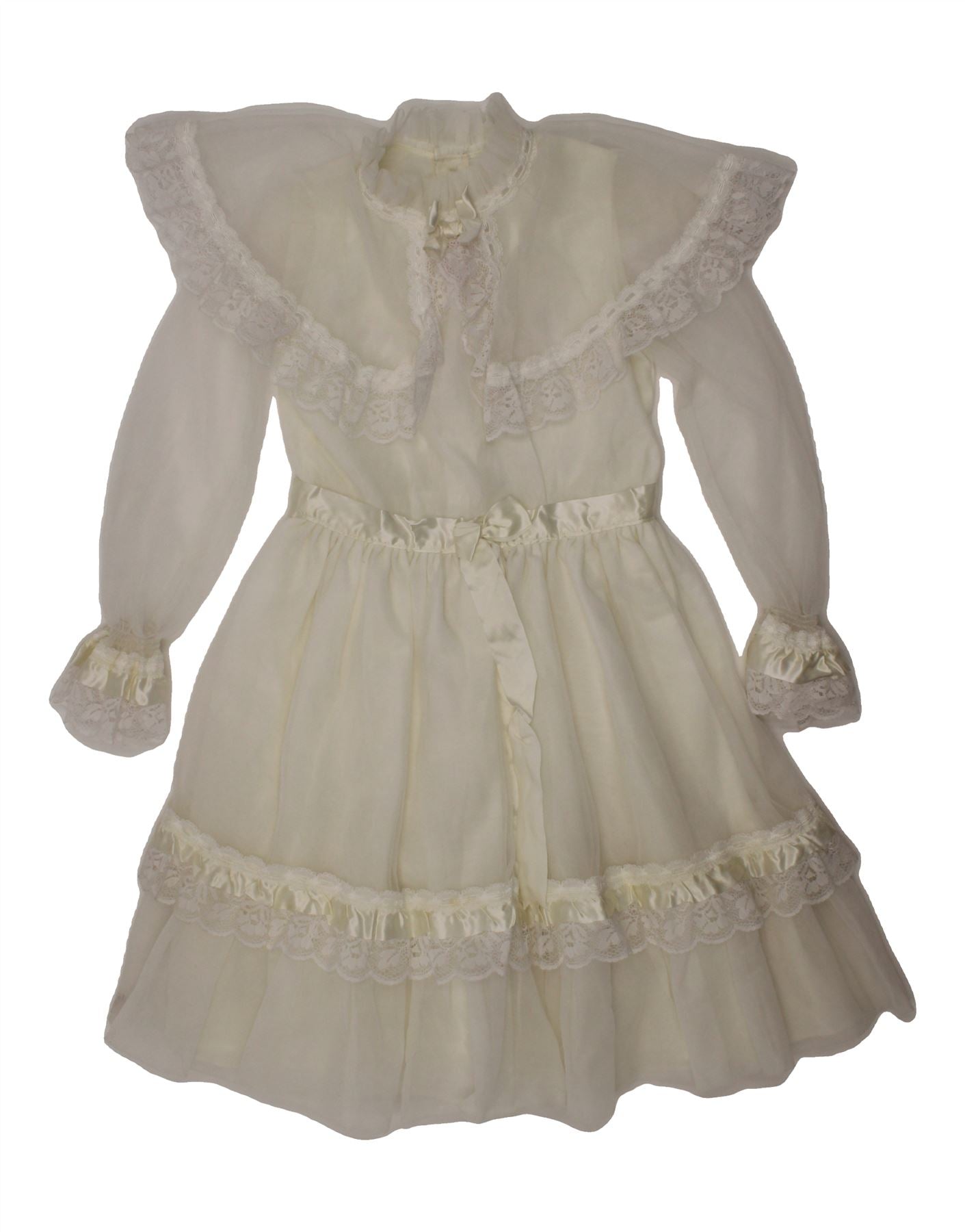 VINTAGE Baby Girls Long Sleeve Maxi Dress 18-24 Months Off White Nylon