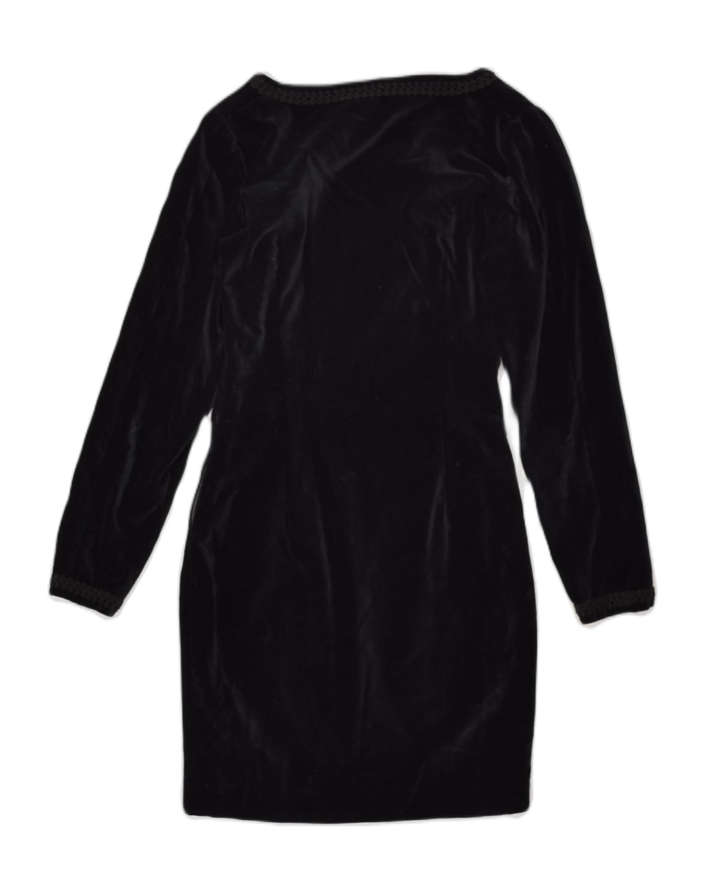 VINTAGE Γυναικείο βελούδινο μακρυμάνικο Bodycon Φόρεμα UK 10 Small μαύρο