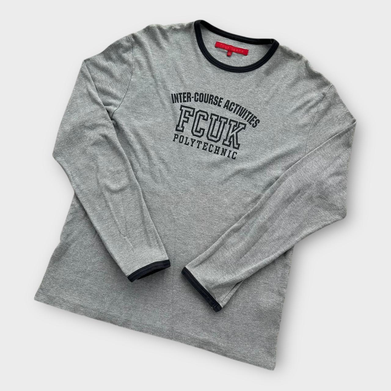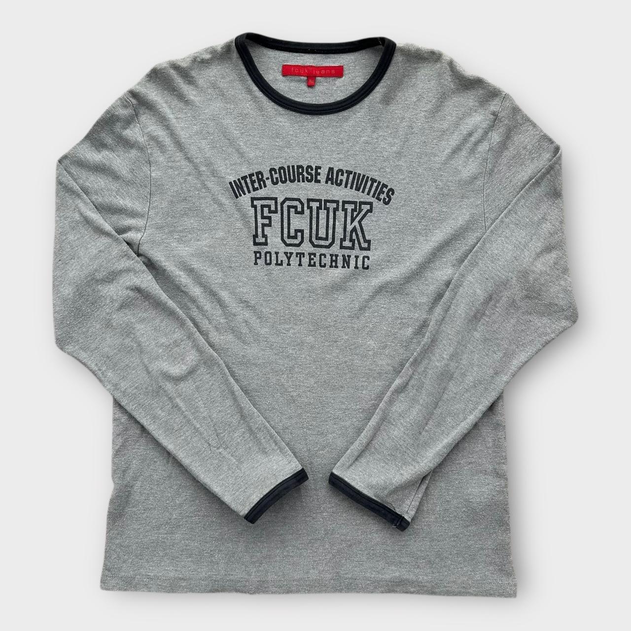 Vintage μακρυμάνικο μπλουζάκι FCUK στις αρχές του 2000 σε γκρι χρώμα