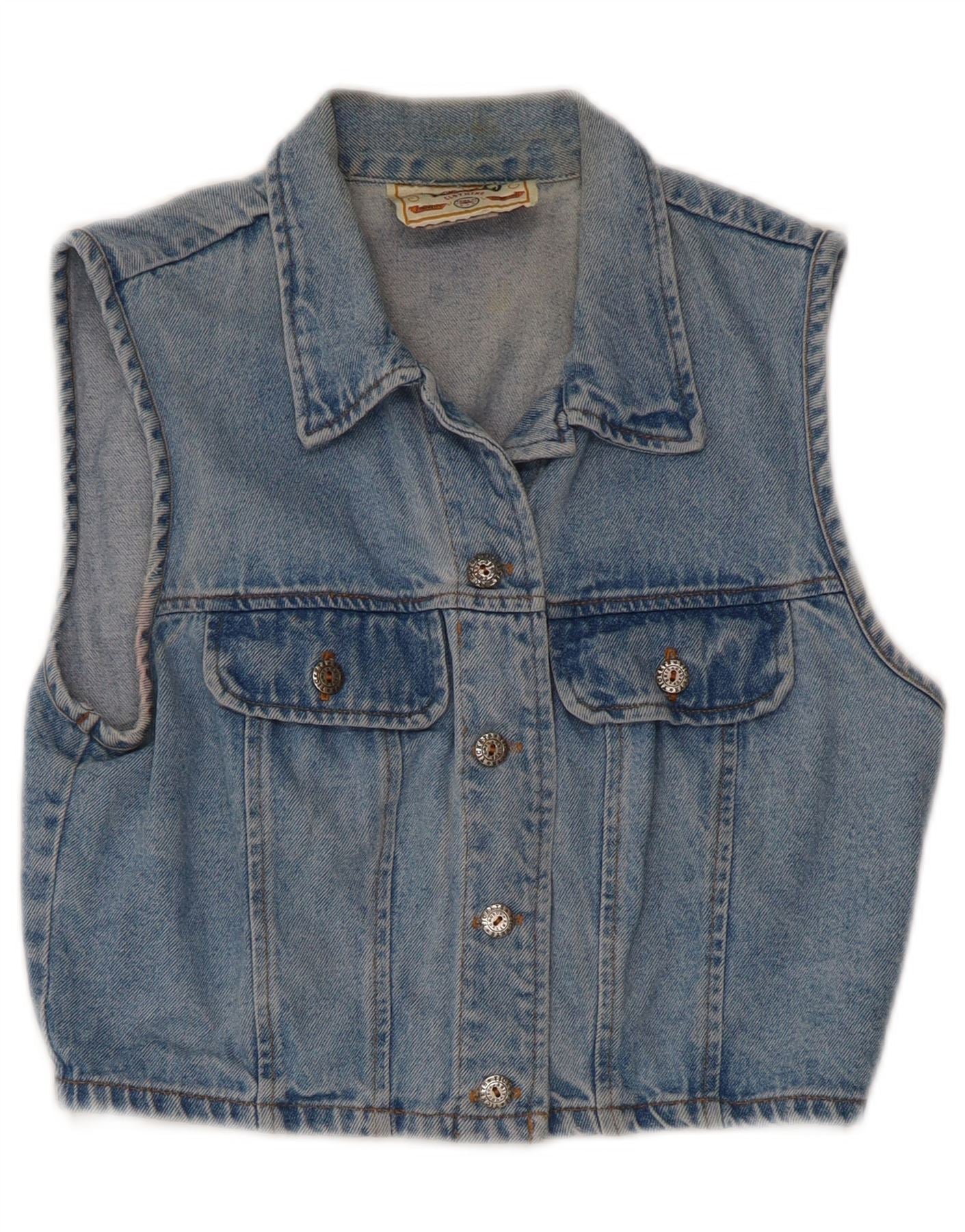VINTAGE Girls Denim Gilet 9-10 Years Blue Cotton