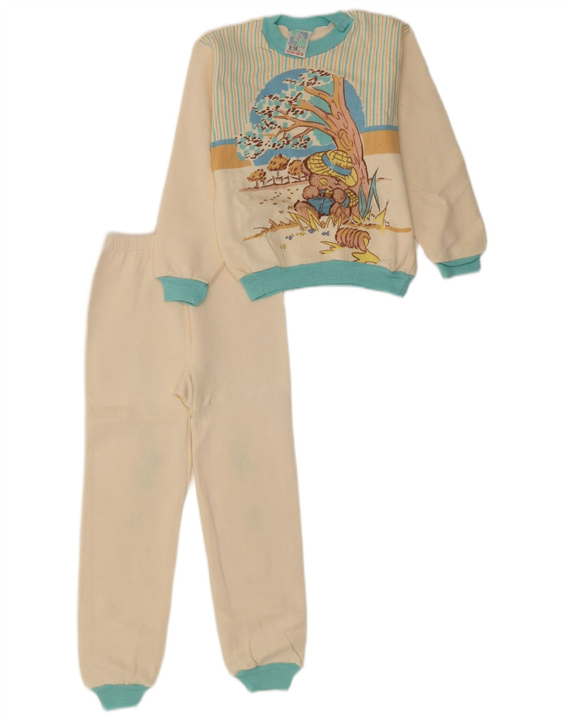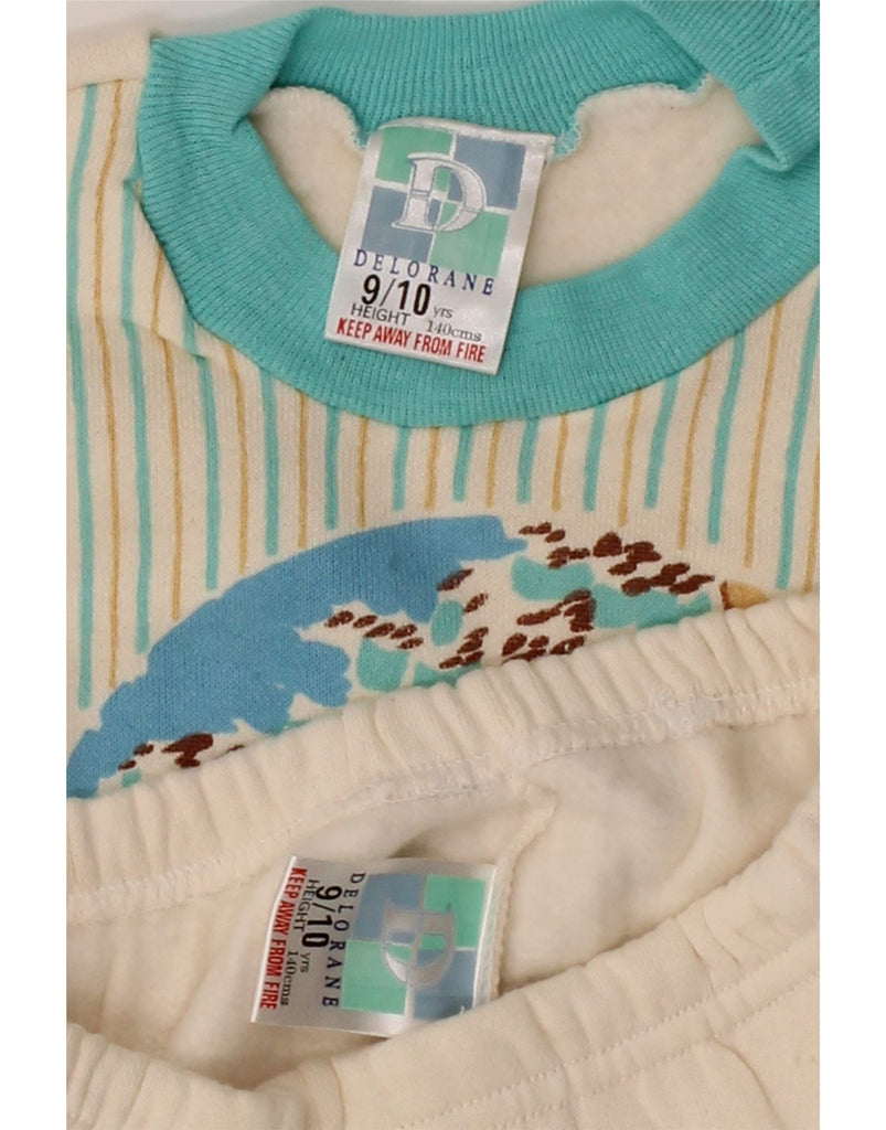 VINTAGE Girls Graphic Full Tracksuit 9-10 Years W20 L20 Off White Cotton