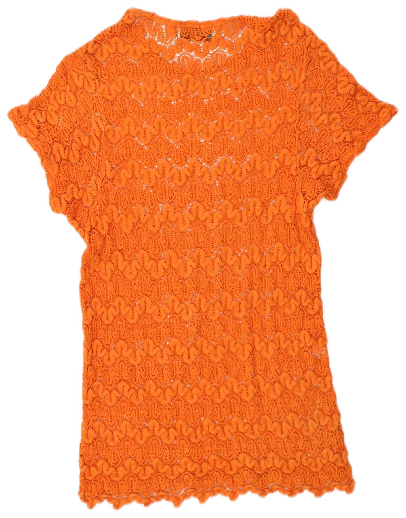 VINTAGE Girls See Through Crochet Tunic Φόρεμα 11-12 ετών Μεγάλο Πορτοκαλί