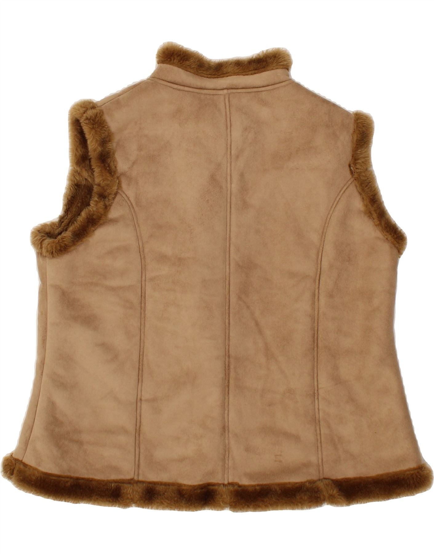 VINTAGE Girls Sherpa Gilet 14-15 Years Medium Brown Colourblock Polyester