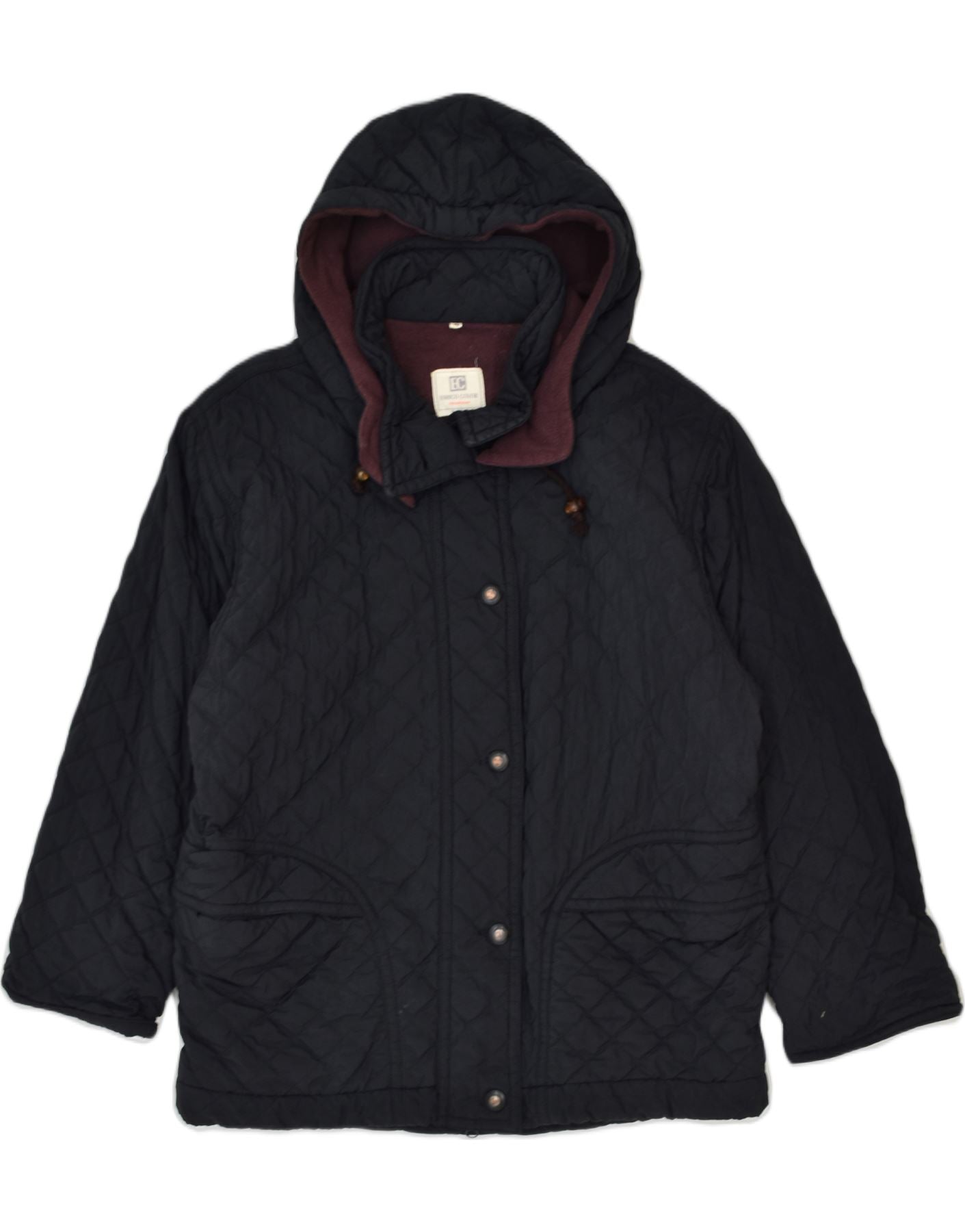 VINTAGE Γυναικείο Καπιτονέ μπουφάν με κουκούλα IT 46 Large Navy Blue Nylon