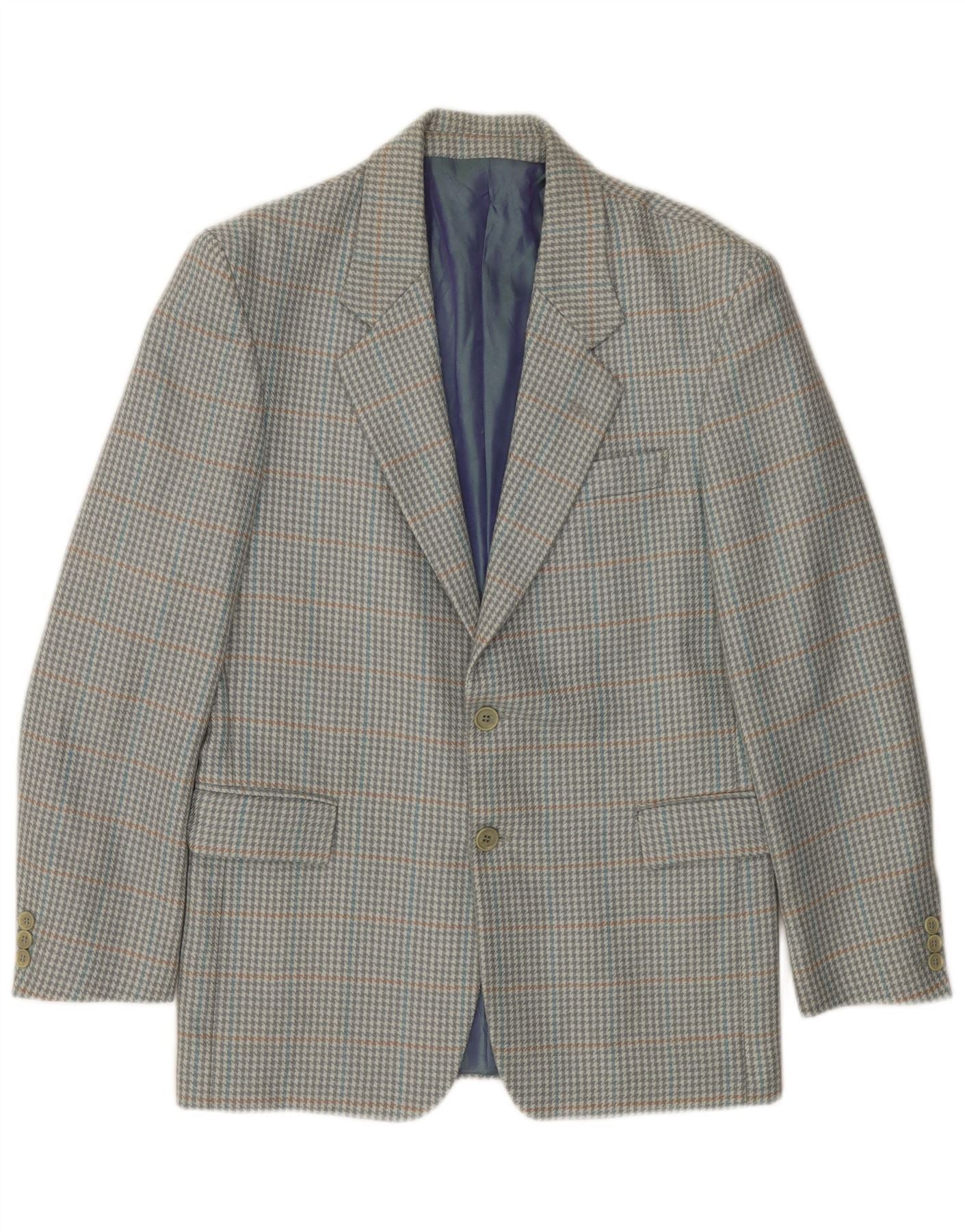 VINTAGE Ανδρικό σακάκι με 2 κουμπιά σακάκι IT 46 Small Grey Houndstooth Νέο μαλλί
