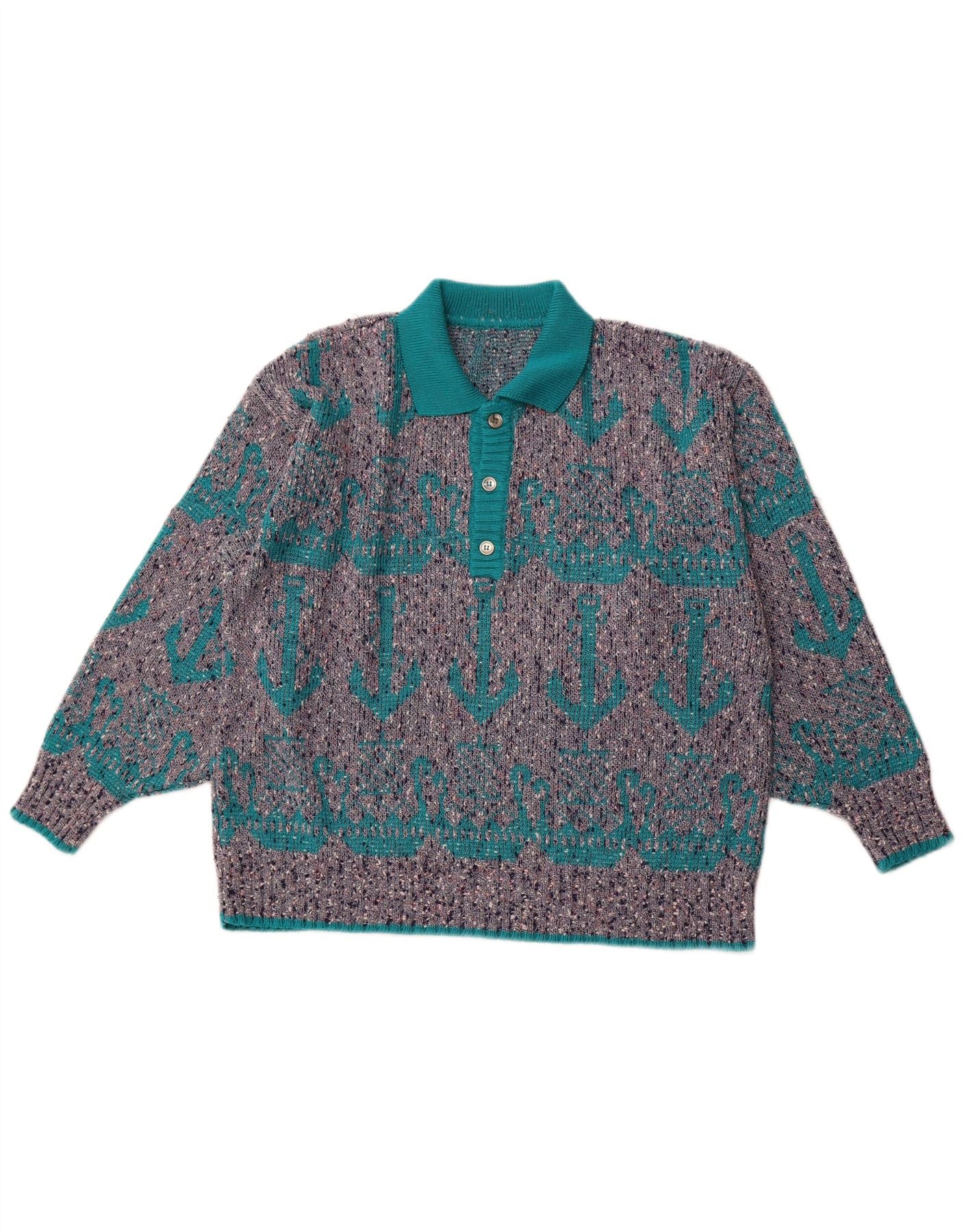 - Περιγραφή AI: Αυτό το Vintage ανδρικό πουλόβερ πουλόβερ με λαιμόκοψη είναι φτιαγμένο από ανάγλυφο πλεκτό ύφασμα σε γκρι και γαλαζοπράσινο χρώμα. Διαθέτει κλασική λαιμόκοψη με γιακά και κλείσιμο με κουμπί. Η κανονική εφαρμογή και τα μακριά μανίκια προσφέρουν άνετη χρήση. Ένα εντυπωσιακό γεωμετρικό σχέδιο προσθέτει ρετρό οπτικό ενδιαφέρον σε αυτό το κομψό πλεκτό. Το ύφασμα έχει μια μοναδική στικτή υφή.