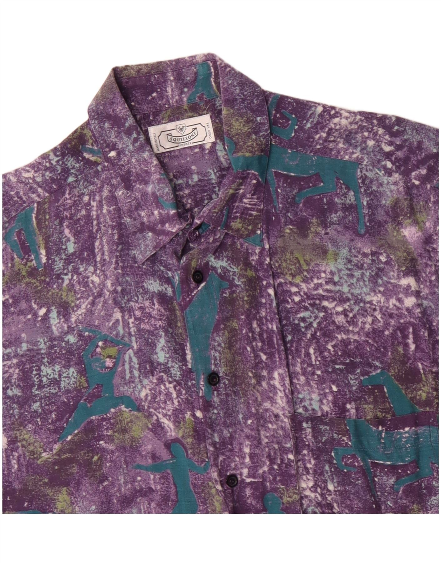 Vintage ανδρικό αφηρημένο πουκάμισο με κοντό μανίκι μεγάλη μωβ βισκόζη
