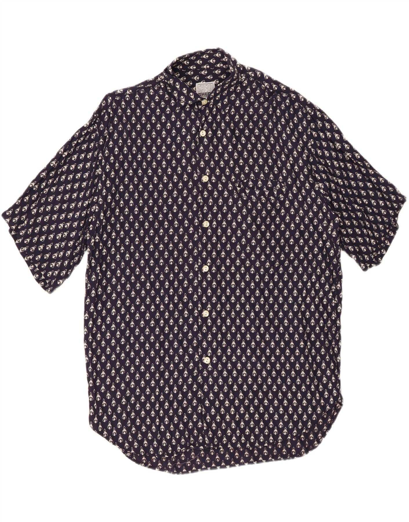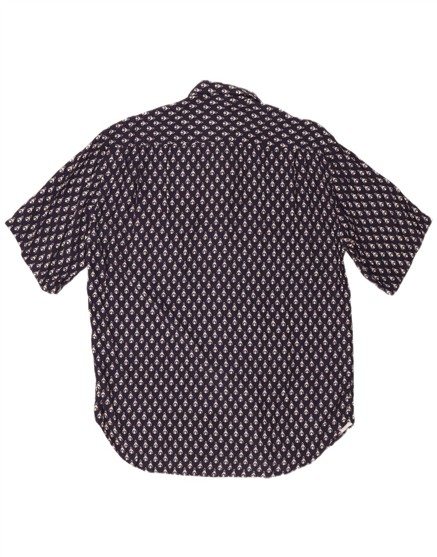 Ανδρικό κοντομάνικο πουκάμισο με αφηρημένο σχέδιο VINTAGE, μεσαίο ναυτικό μπλε βισκόζη