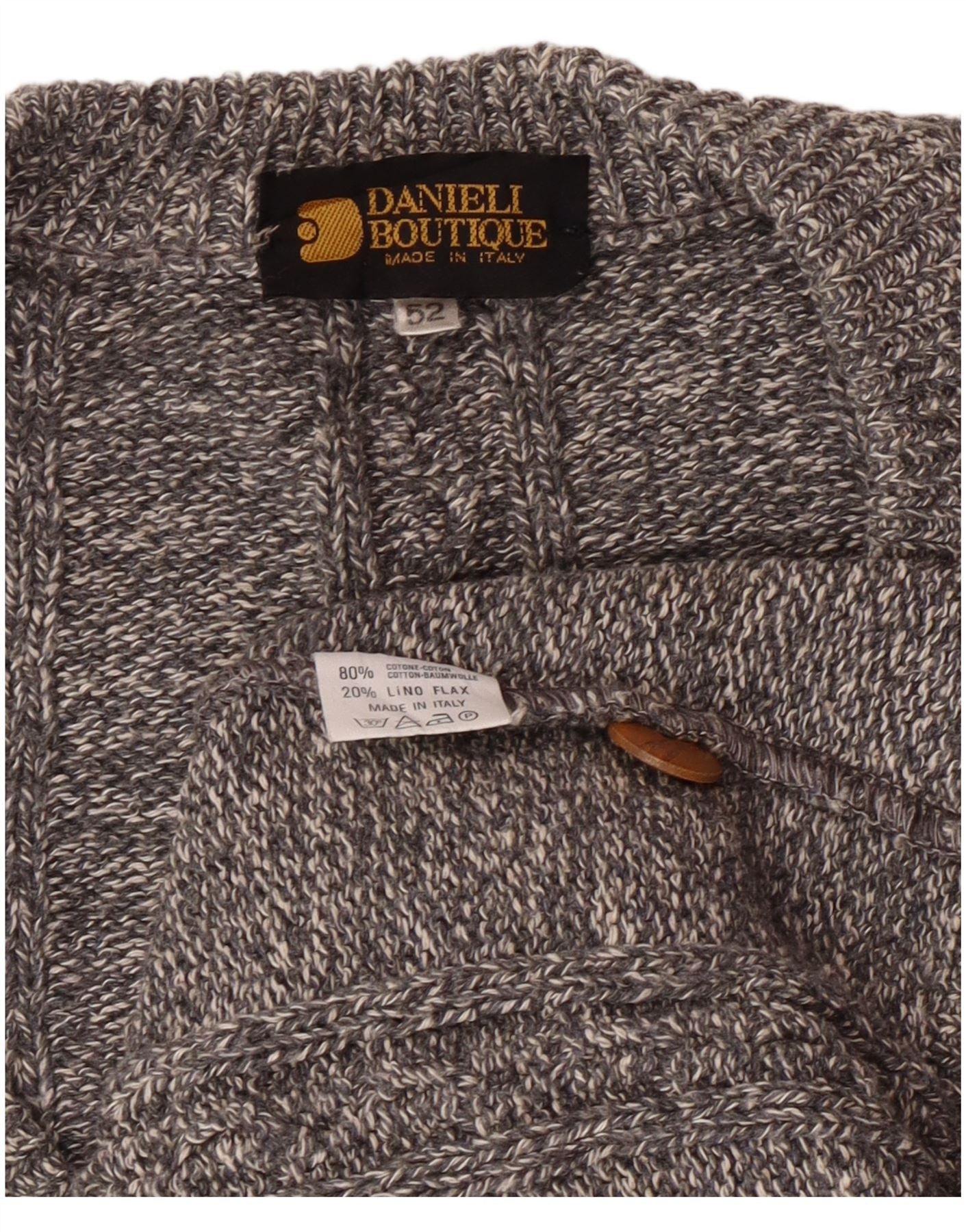 - Περιγραφή AI: Αυτό το ανδρικό πουλόβερ με ζακέτα Danieli Boutique είναι φτιαγμένο από ένα μείγμα γκρι λεκέ βαμβάκι και λινό. Το πλεκτό ύφασμα προσφέρει άνετη, ξεκούραστη εφαρμογή. Διαθέτει κλασική λαιμόκοψη σε σχήμα V και μπροστινό μέρος με κουμπιά με τονικά κουμπιά. Τα μακριά μανίκια προσφέρουν ζεστασιά. Δύο μπροστινές τσέπες προσθέτουν πρακτικές λεπτομέρειες. Αυτό το ιταλικό κομμάτι συνδυάζει το κλασικό στυλ με την καθημερινή άνεση.