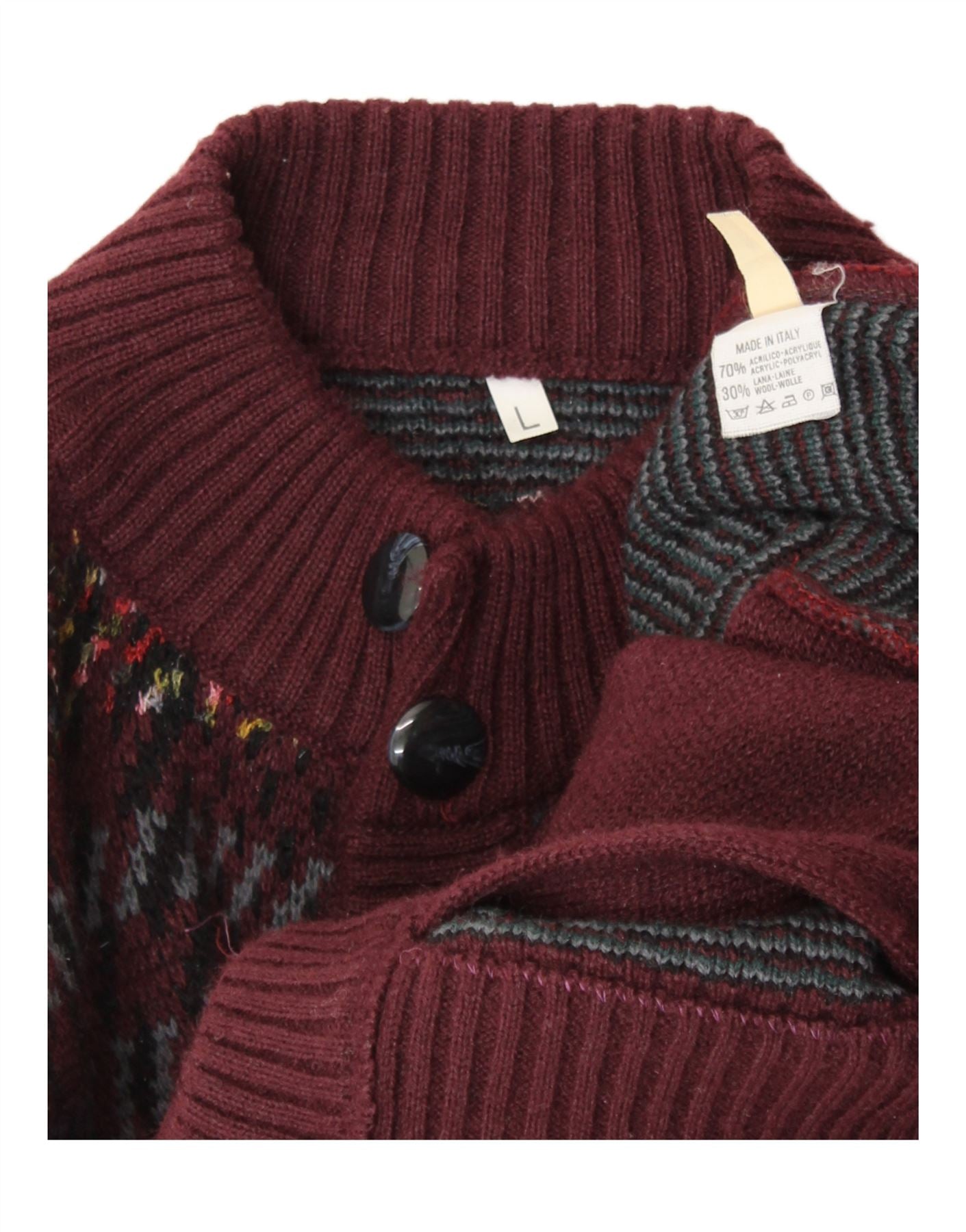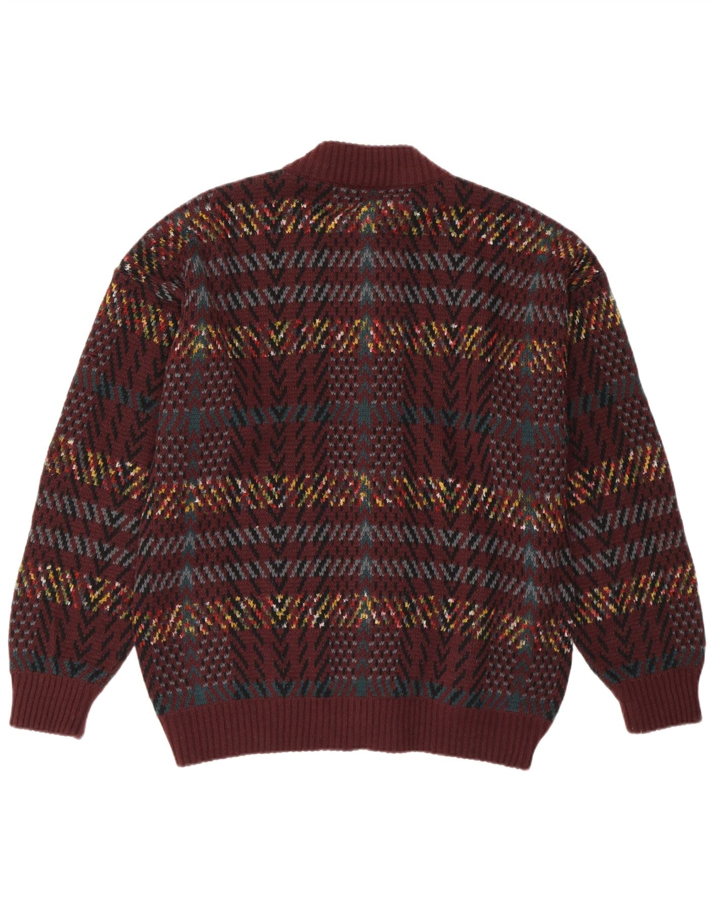Ανδρικό πουλόβερ με ζακέτα VINTAGE Large Maroon Γεωμετρικό Ακρυλικό