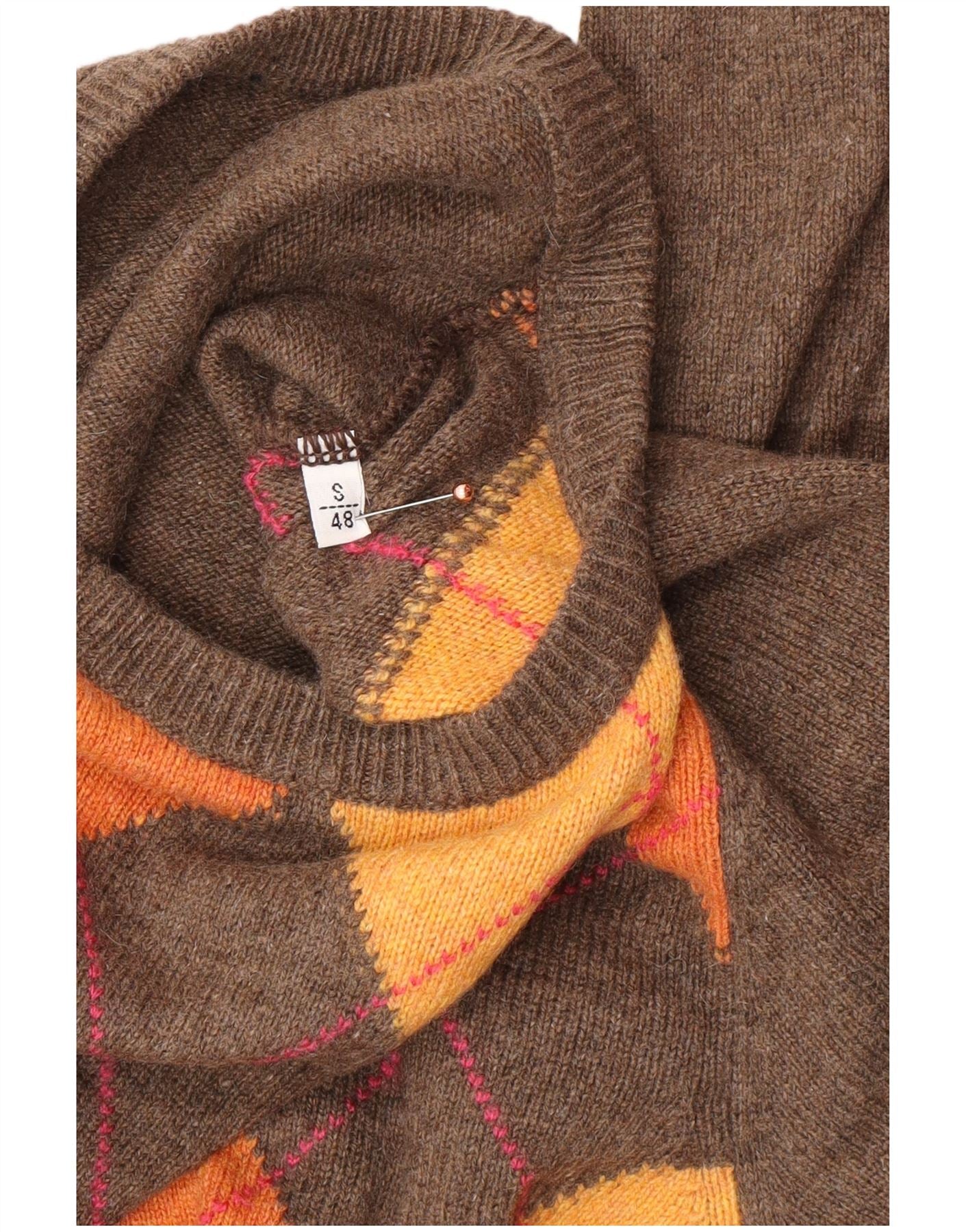 Ανδρικό πουλόβερ με λαιμόκοψη VINTAGE IT 48 Small Brown Argyle/Diamond