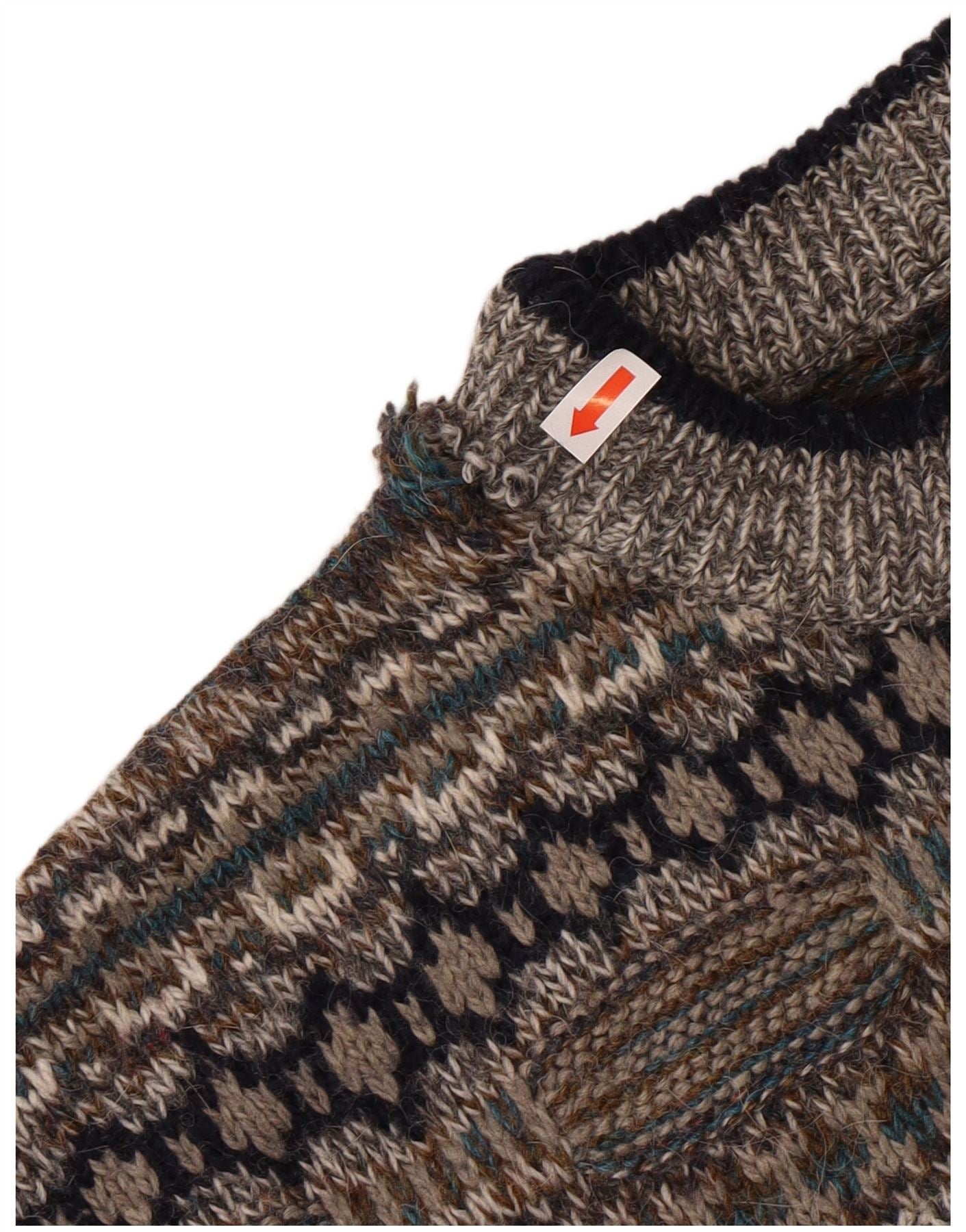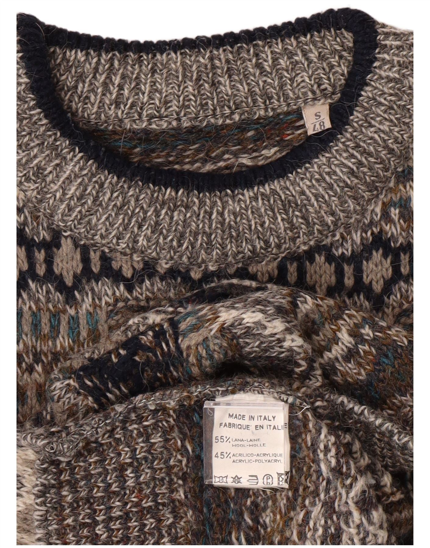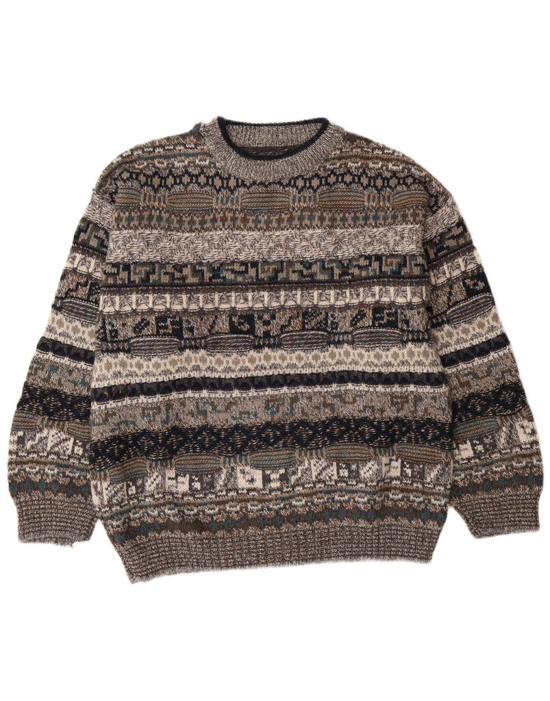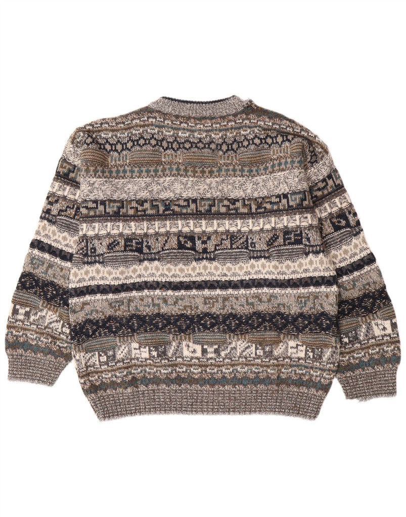 Ανδρικό πουλόβερ με λαιμόκοψη VINTAGE IT 48 Μικρό Γκρι γεωμετρικό μαλλί