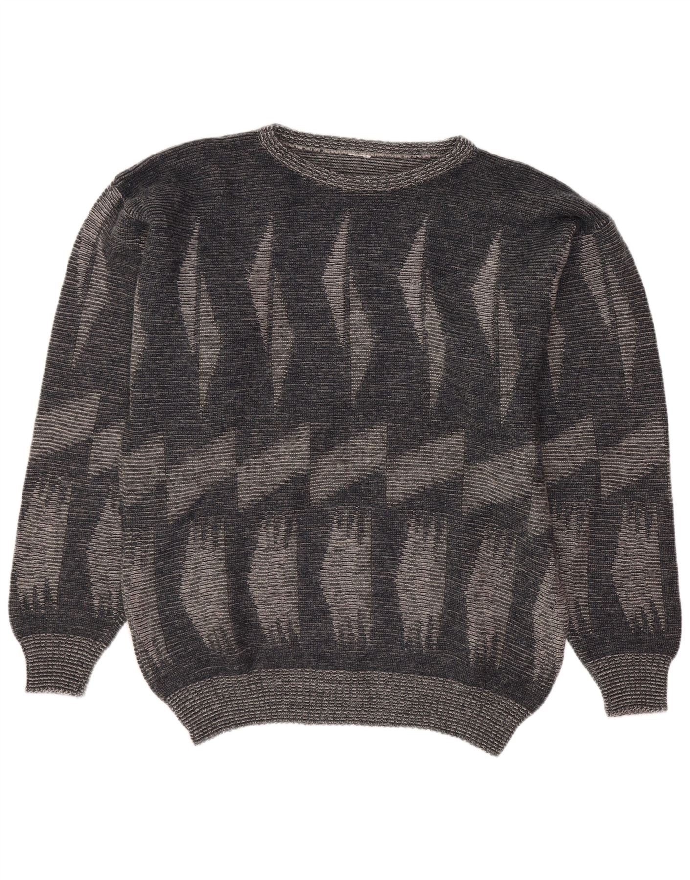 Vintage Ανδρικό πουλόβερ με λαιμόκοψη μεγάλο γκρι γεωμετρικό