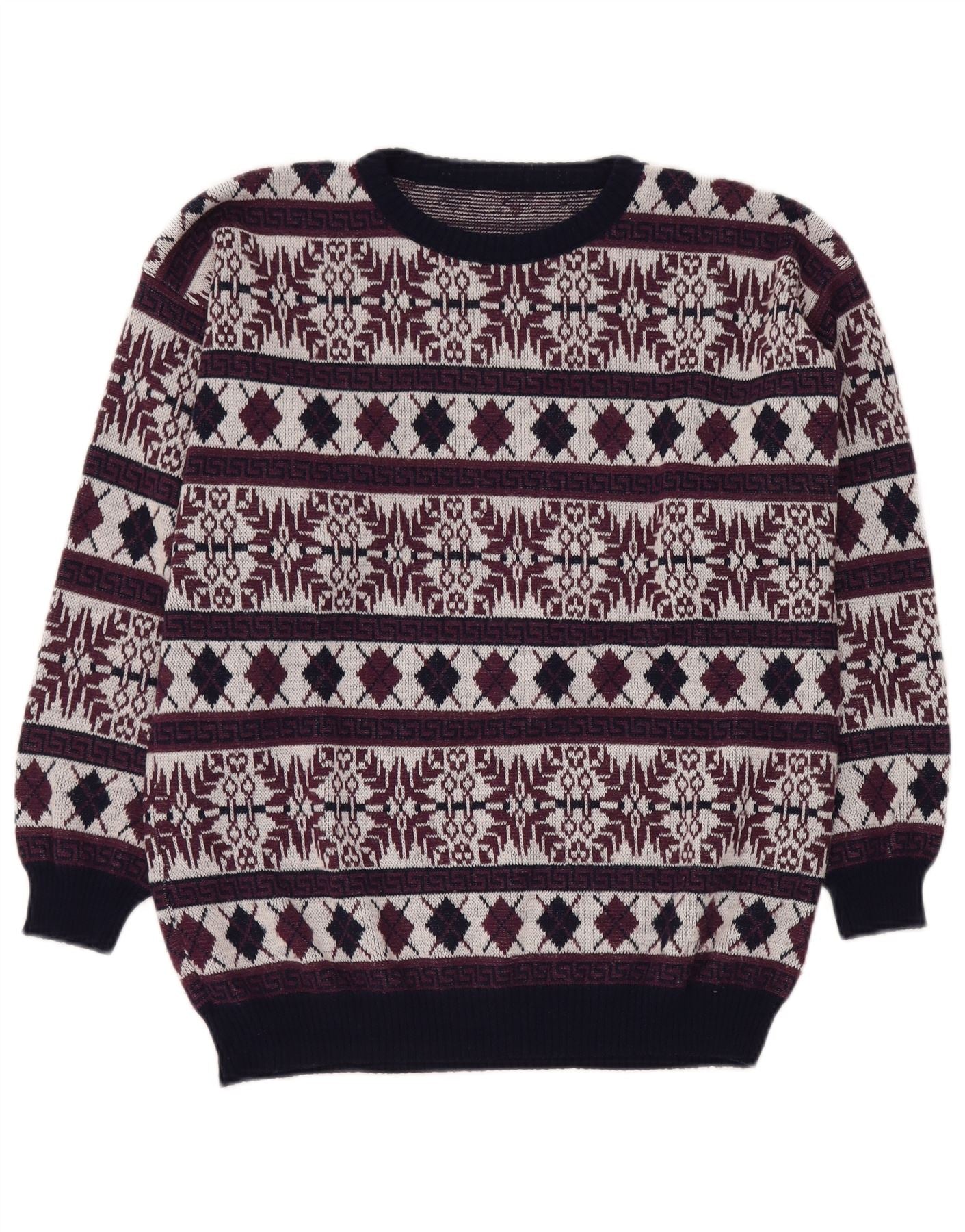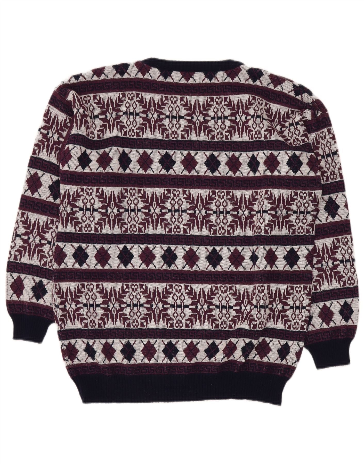 VINTAGE Ανδρικό πουλόβερ με λαιμόκοψη UK 40 Medium Burgundy Fair Isle