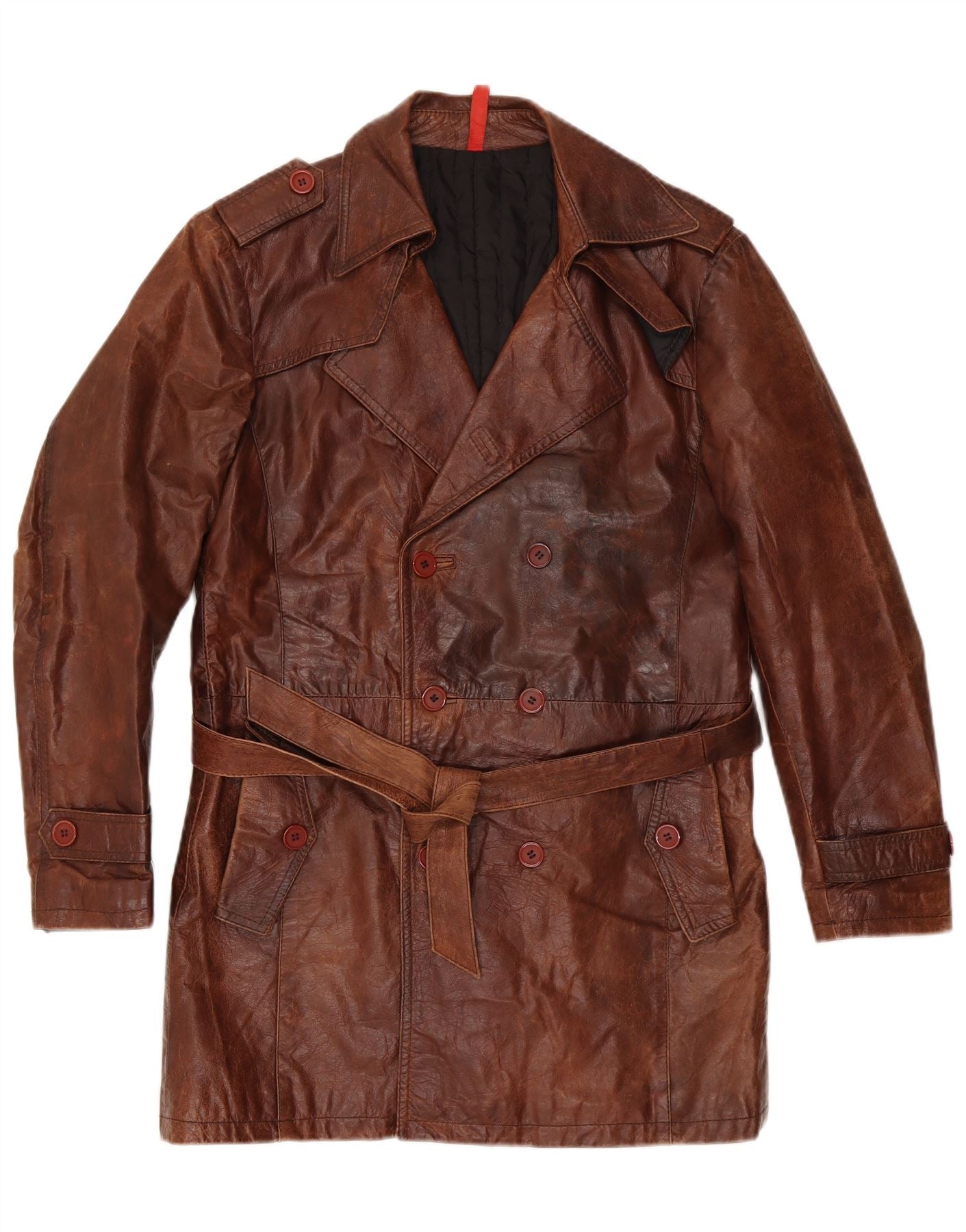 VINTAGE Ανδρικό Δερμάτινο Στρατιωτικό Διπλό Παλτό IT 50 Μεγάλο Καφέ