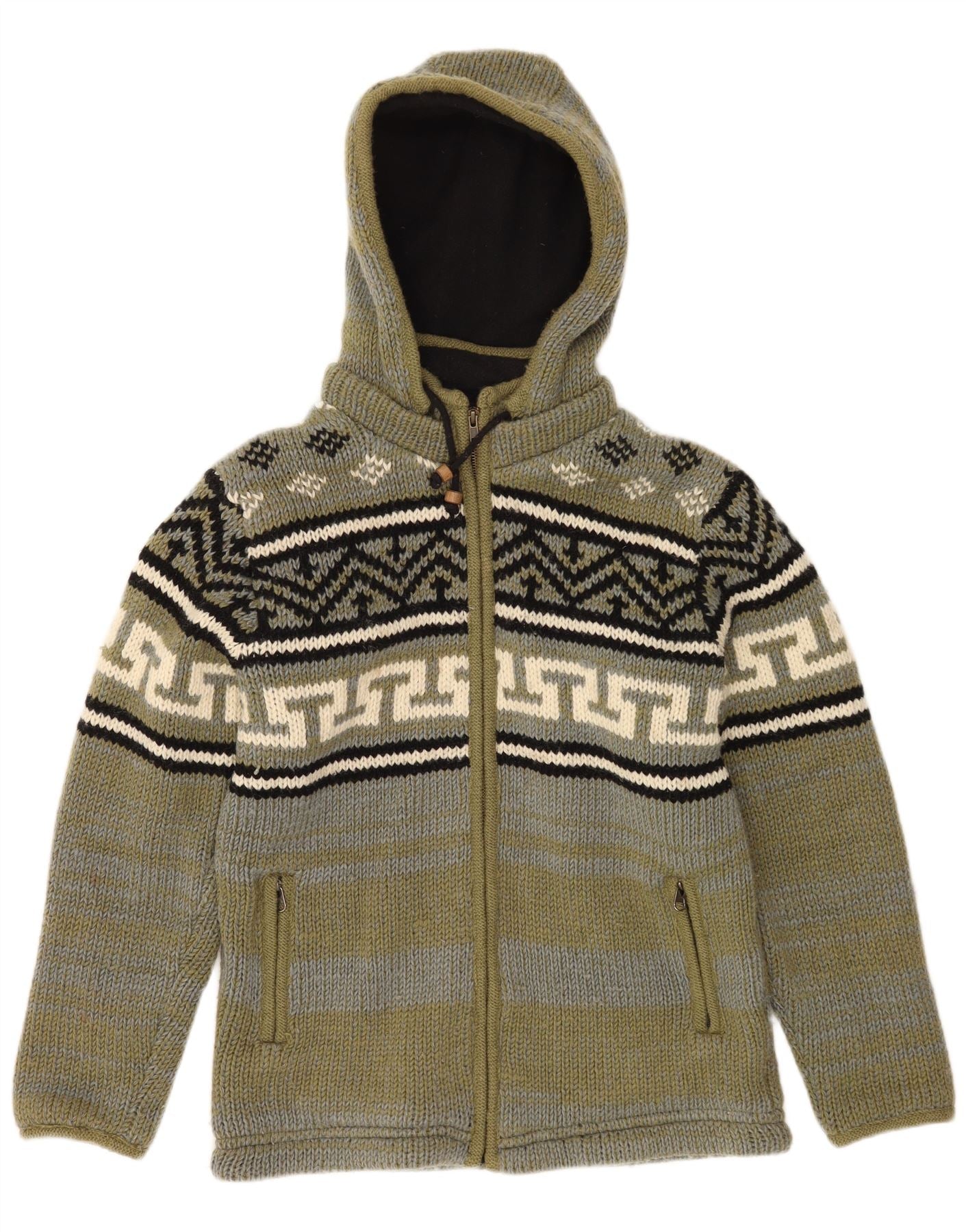 Ανδρικό πουλόβερ με κουκούλα VINTAGE Ζακέτα με μεσαίο χακί Fair Isle Wool