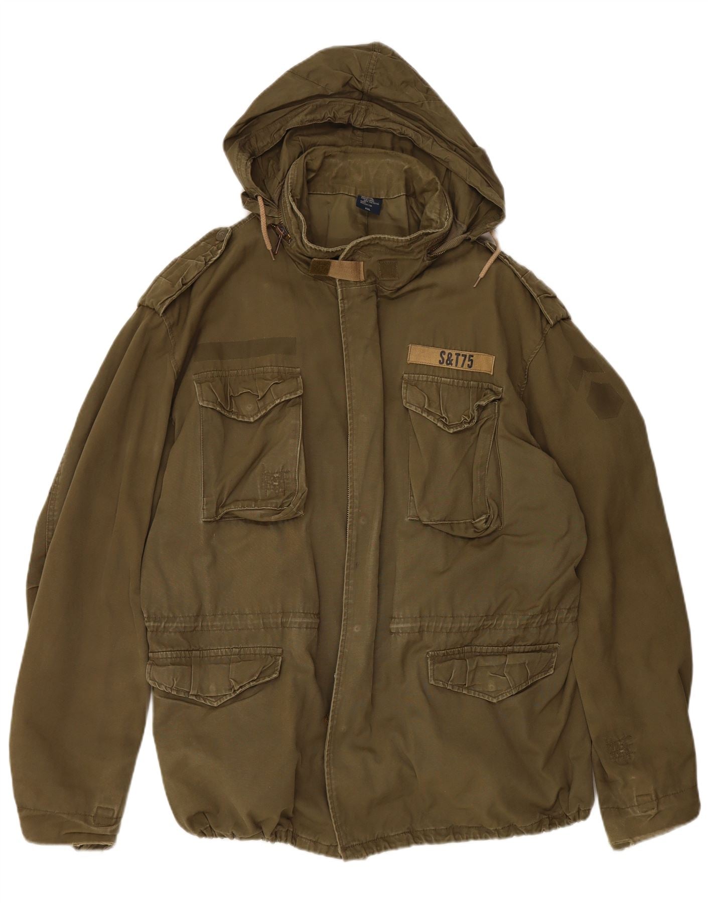 Ανδρικό Military Jacket VINTAGE με κουκούλα UK 44 2XL Χακί βαμβακερό