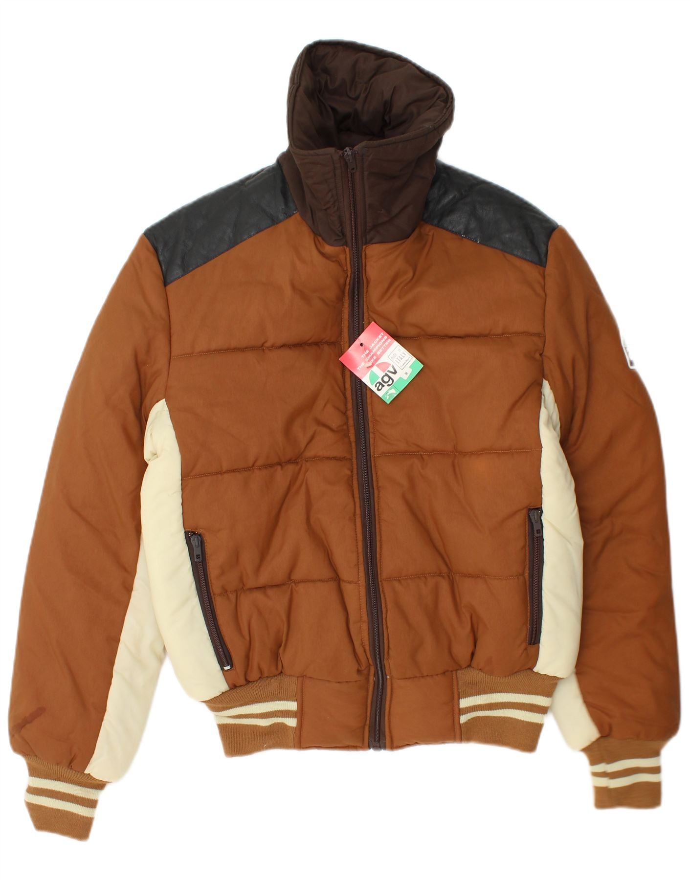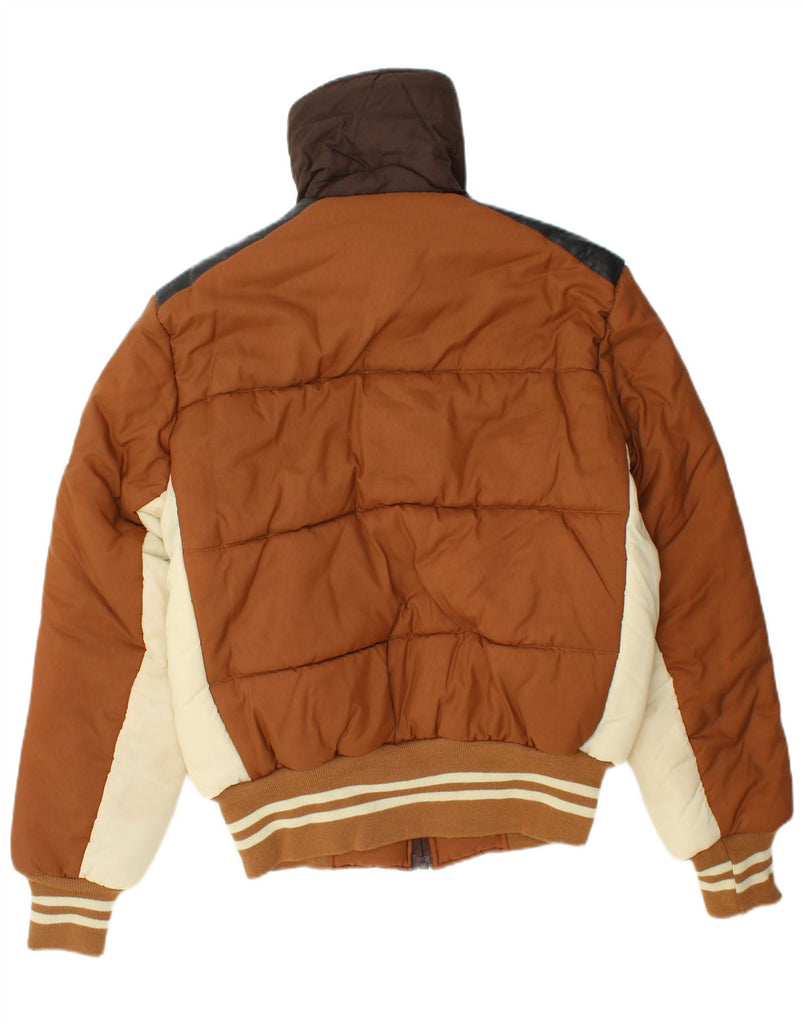 VINTAGE Ανδρικό μπουφάν με κουκούλα με επένδυση UK 38 μεσαίου καφέ χρώματος πολυαμίδιο
