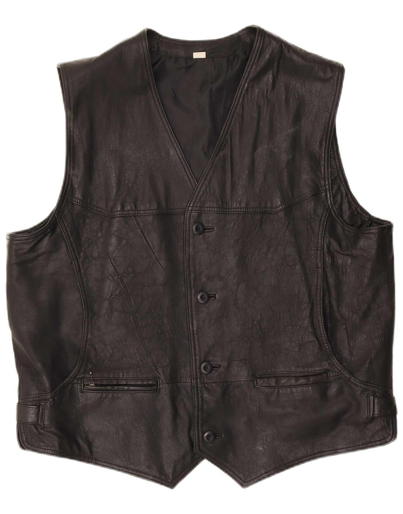 VINTAGE Ανδρικό Δερμάτινο Γιλέκο 3XL Μαύρο Δερμάτινο