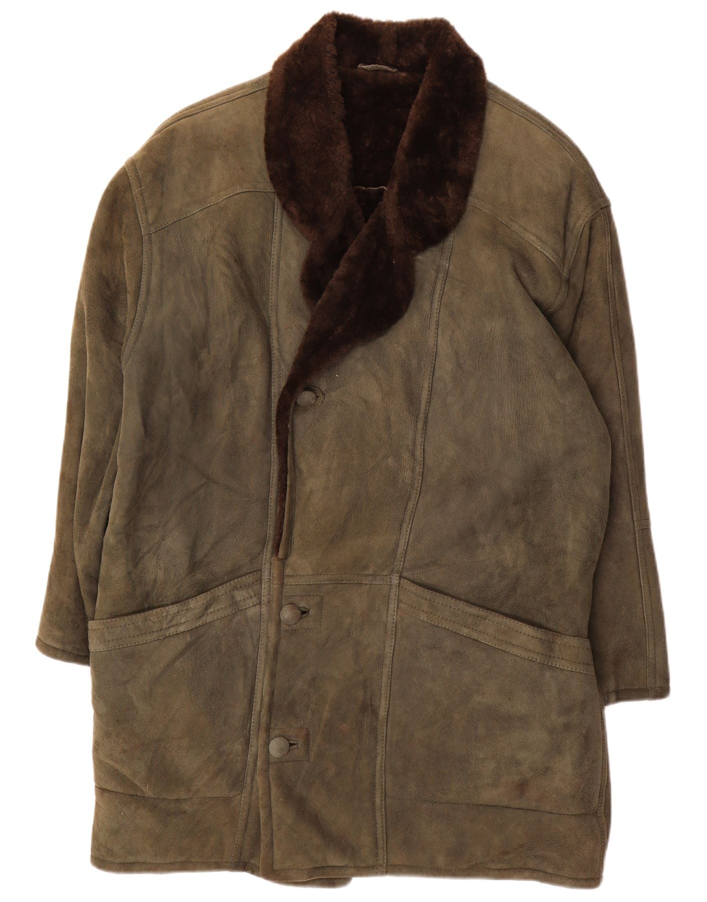 VINTAGE Ανδρικό παλτό Shearling Loose Fit UK 36 Small Khaki