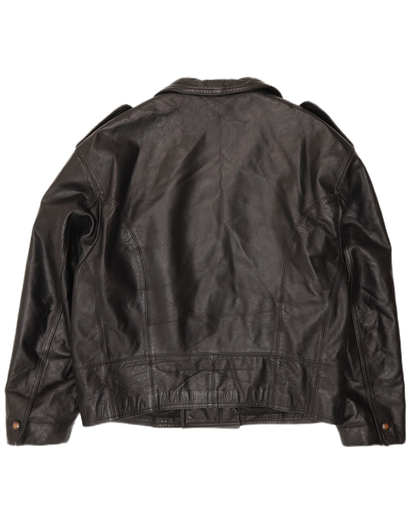 VINTAGE Mens Military Double Breasted Leather Jacket UK 42 XL Black
