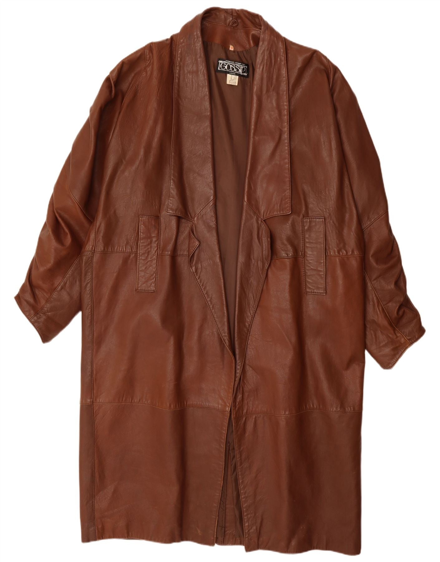 VINTAGE Ανδρικό Ανοιχτό Δερμάτινο Παλτό UK 38 Δερμάτινο Μεσαίο Καφέ