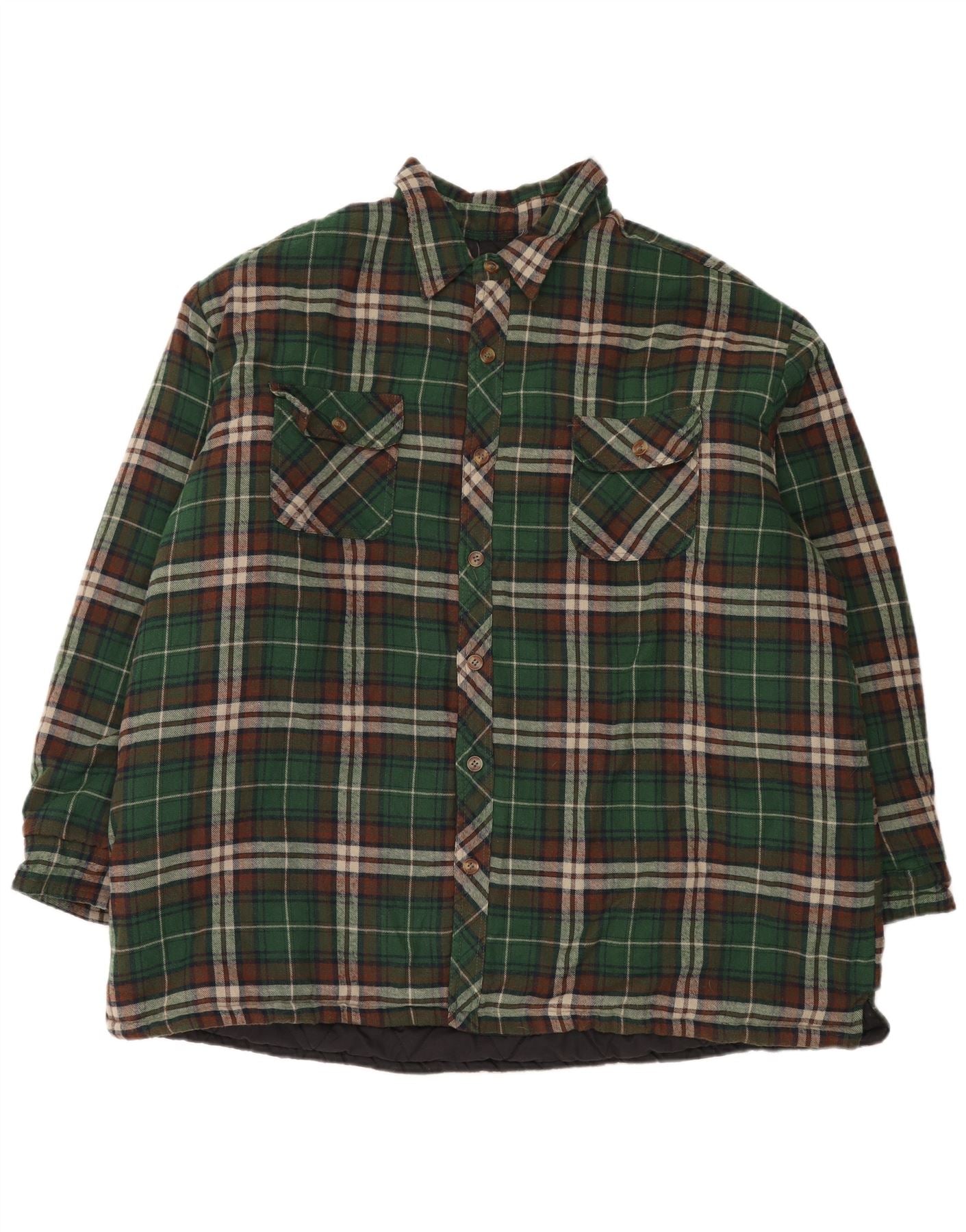 Vintage Ανδρικό φανελένιο πουκάμισο με επένδυση 3XL Κλασικό από πολυεστέρα πράσινο τσοκ