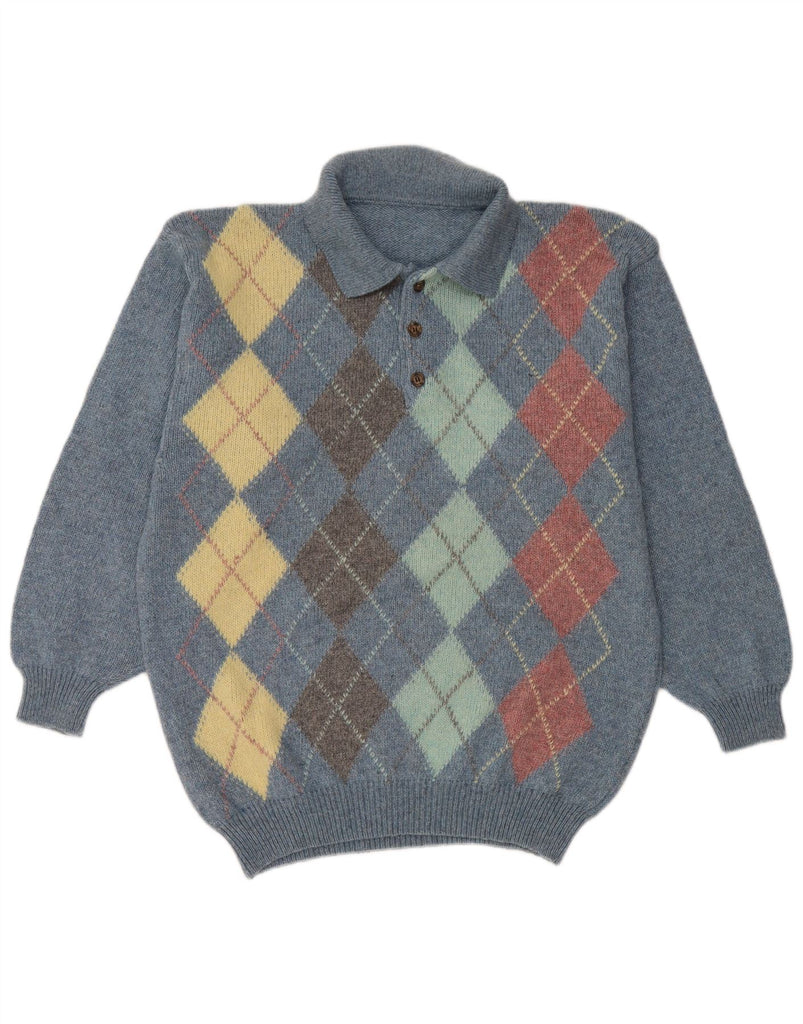 Ανδρικό πουλόβερ με λαιμό πόλο VINTAGE Μεσαίο μπλε Argyle/Diamond Wool