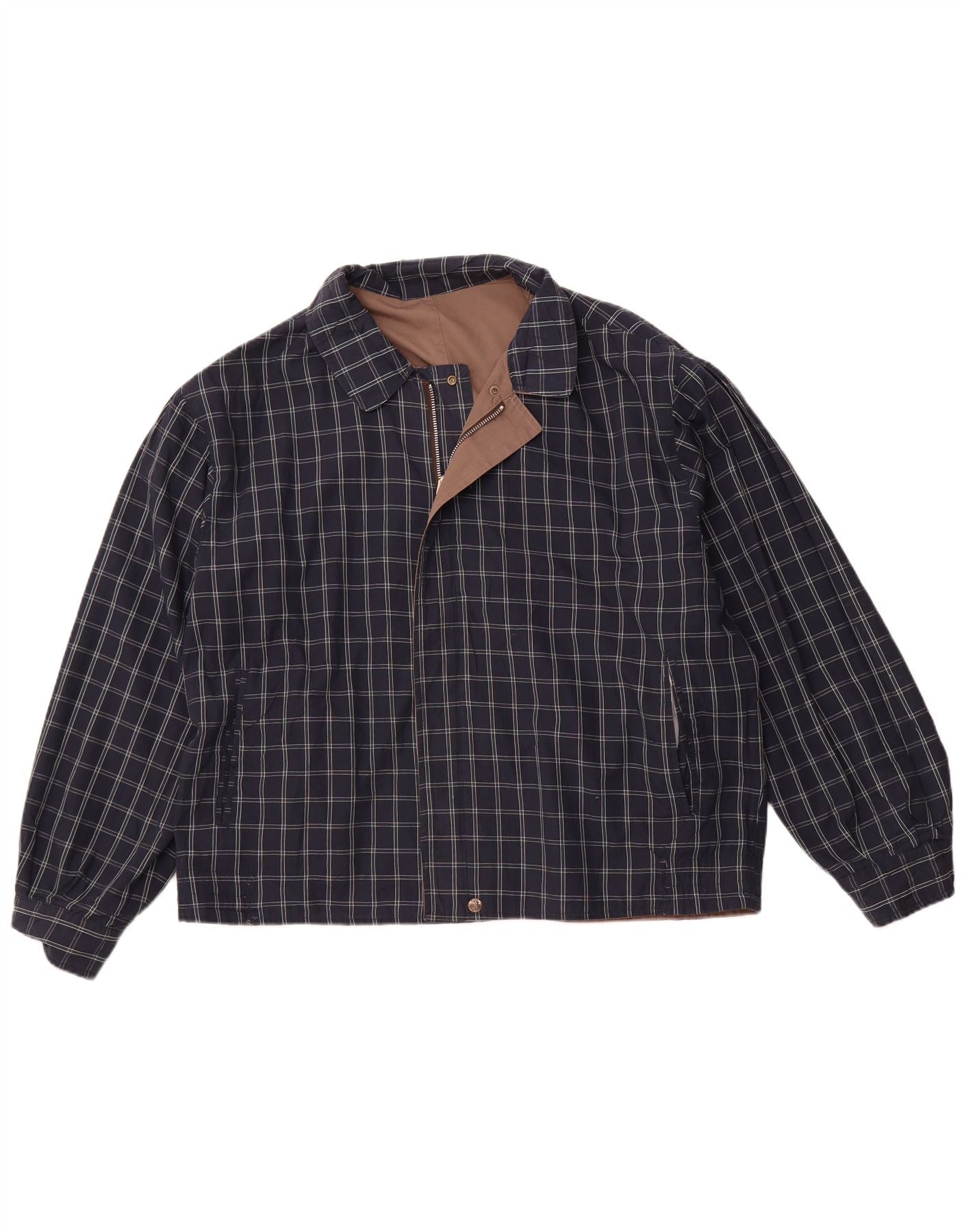VINTAGE Mens Polo Neck Jumper Sweater Large Blue Argyle/Diamond