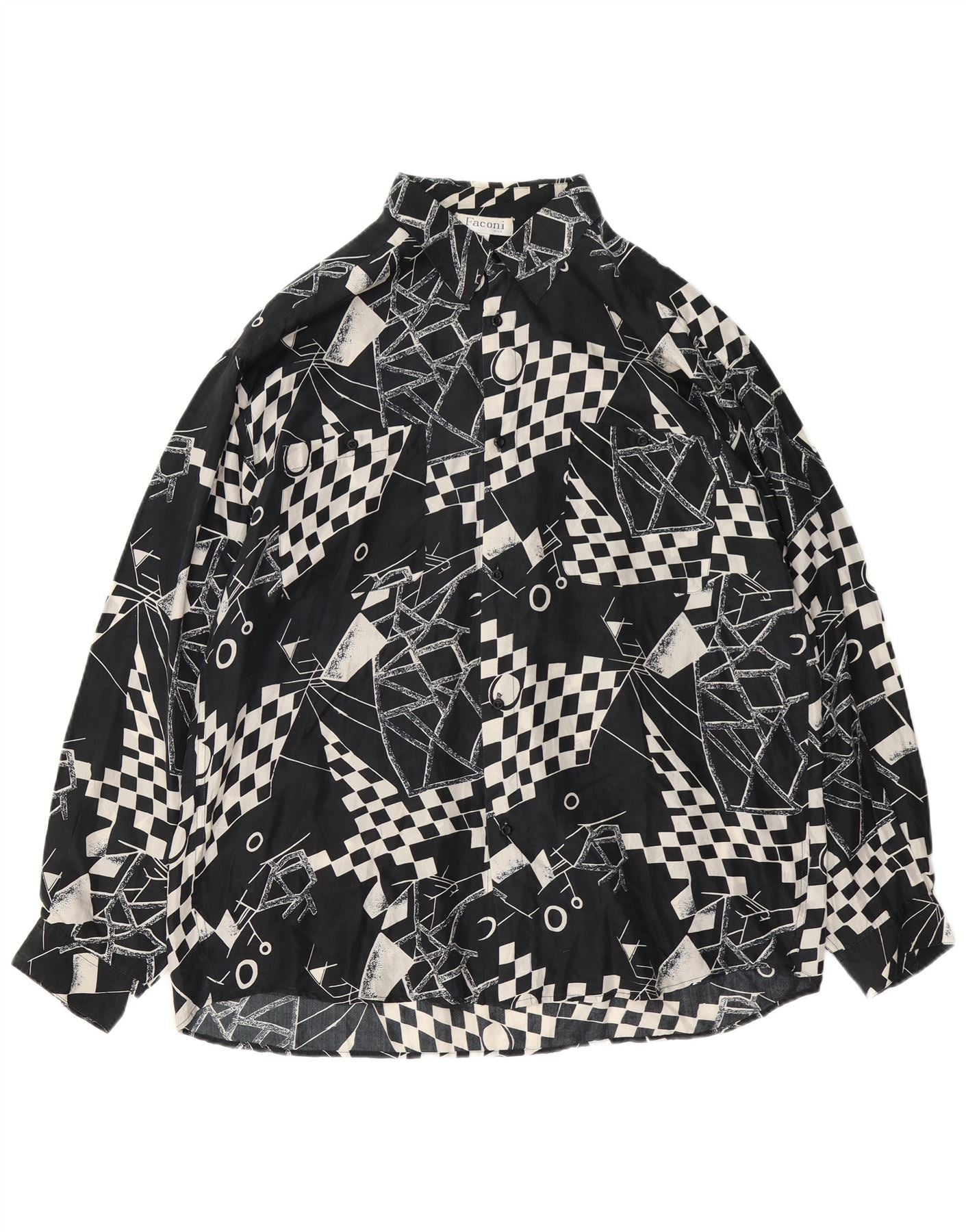 Ανδρικό πουκάμισο VINTAGE XL Μαύρο γεωμετρικό μετάξι