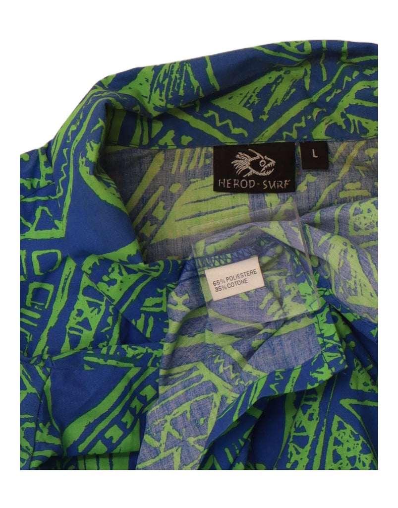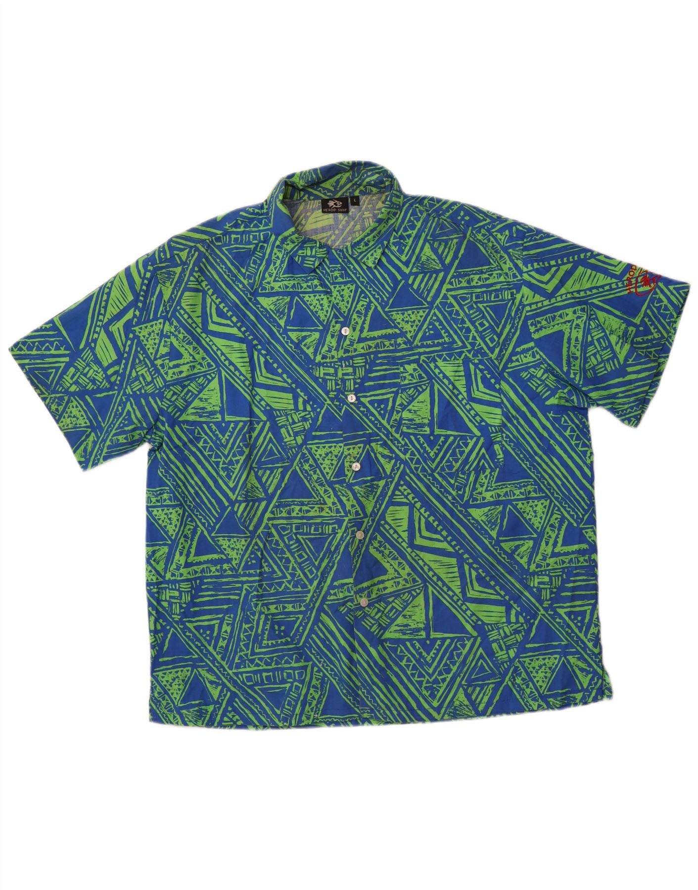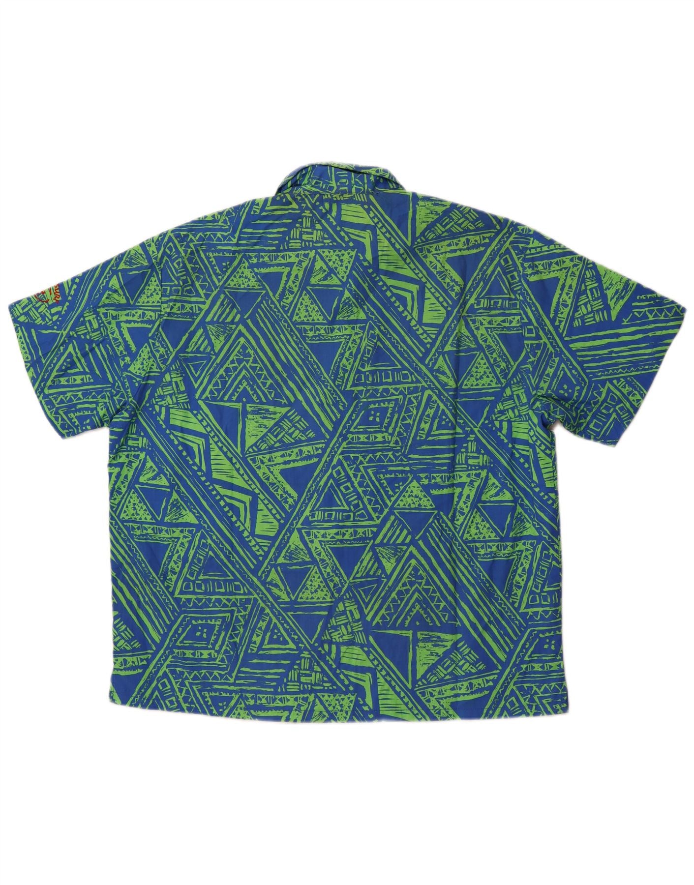Ανδρικό κοντομάνικο πουκάμισο VINTAGE Μεγάλο μπλε γεωμετρικό πολυεστέρα