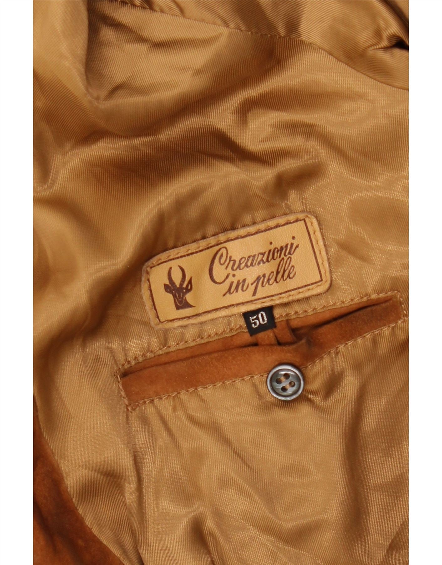 VINTAGE Ανδρικό Suede Bomber Jacket IT 50 Large Beige Leather