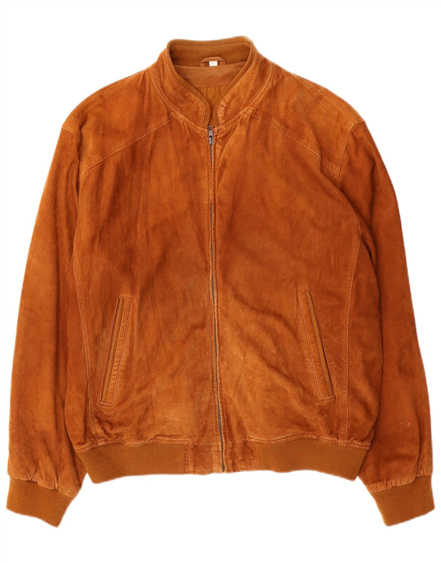 VINTAGE Ανδρικό Suede Bomber Jacket IT 54 2XL Beige Leather