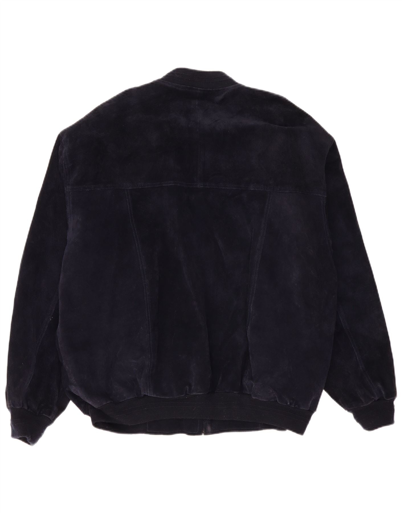 VINTAGE Ανδρικό Suede Bomber Jacket IT 54 2XL Navy Blue Leather