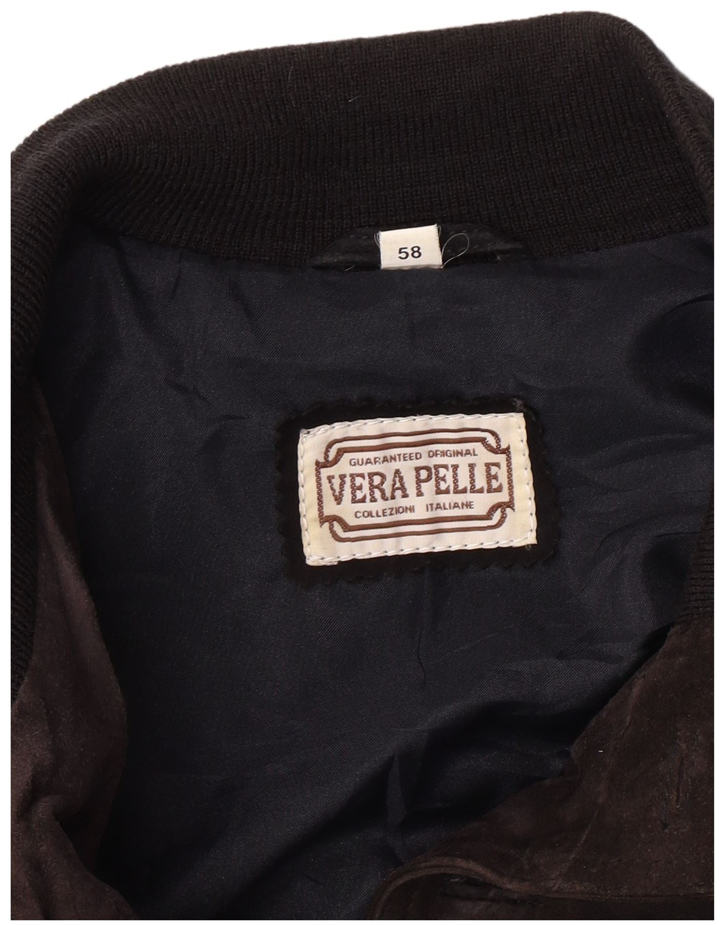 VINTAGE Ανδρικό Suede Bomber Jacket IT 58 4XL Navy Blue Leather